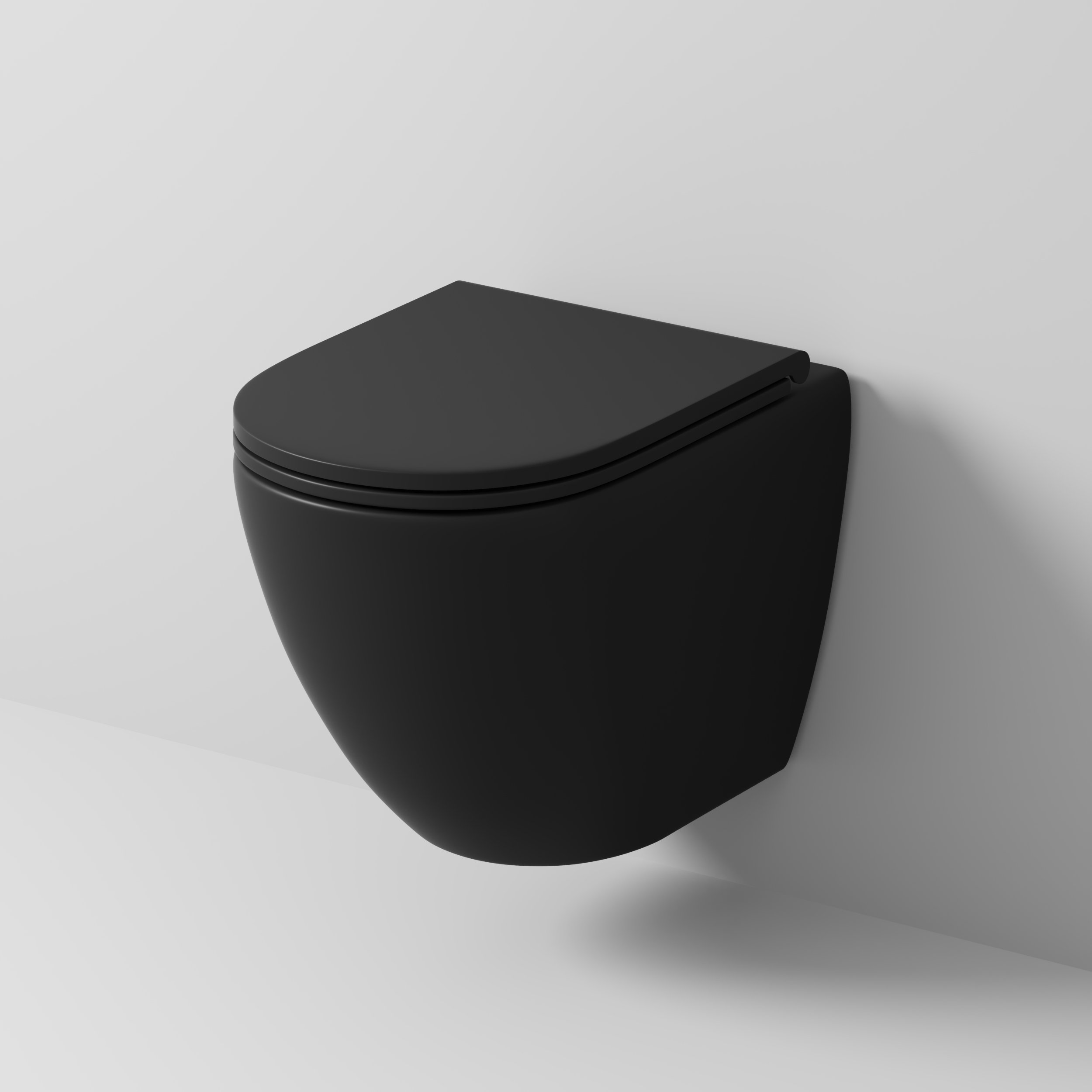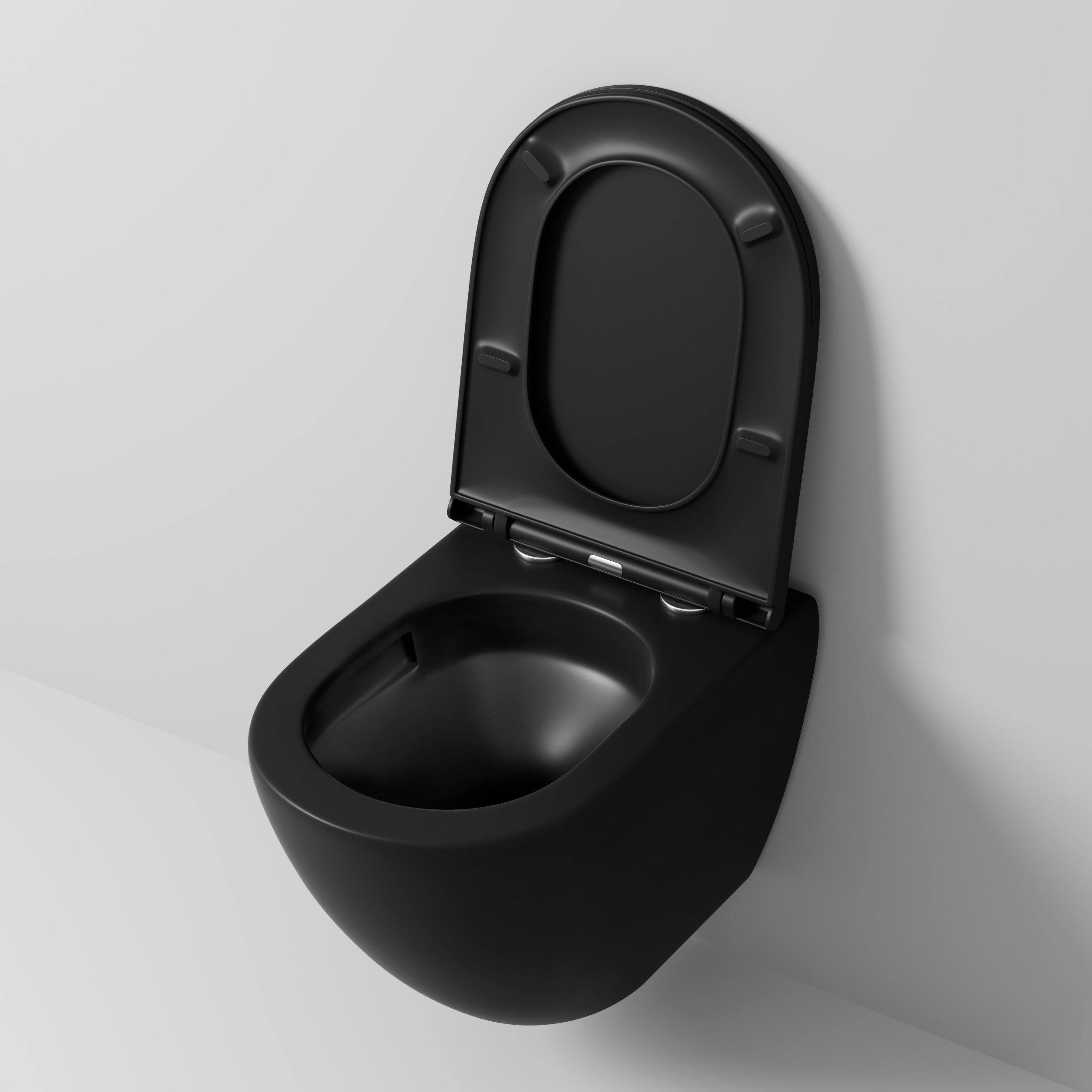 Унитаз GR-4455BMSQ (490*370*360) ЧЕРНЫЙ МАТОВЫЙ подвесной безободковый СМЫВ ТОРНАДО БЕСШУМНЫЙ 1 мест