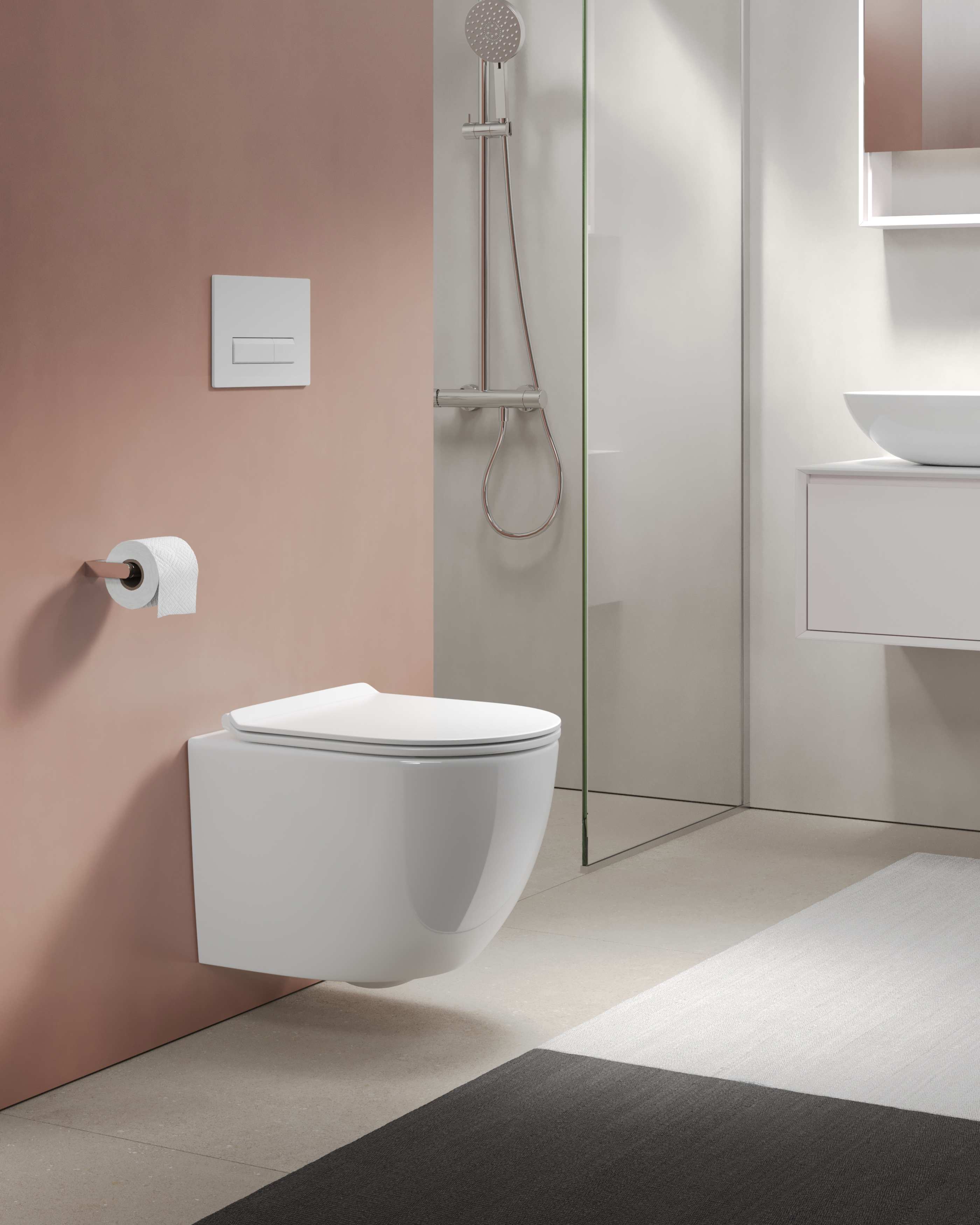 Безободковая чаша Rimless, в конструкции которой отсутствуют труднодоступные места, способствующие скоплению грязи и размножению патогенных бактерий. Гигиеническое решение для минимального распространения неприятных запахов. Унитаз с мощным каскадным смывом. Конструкция чаши унитаза позволяет избежать попадание брызг воды при использовании. Инновационная конструкция безободковой модели препятствует развитию бактерий, так как внутренние стенки такой чаши не имеют труднодоступных мест и легко поддаются очистке.
