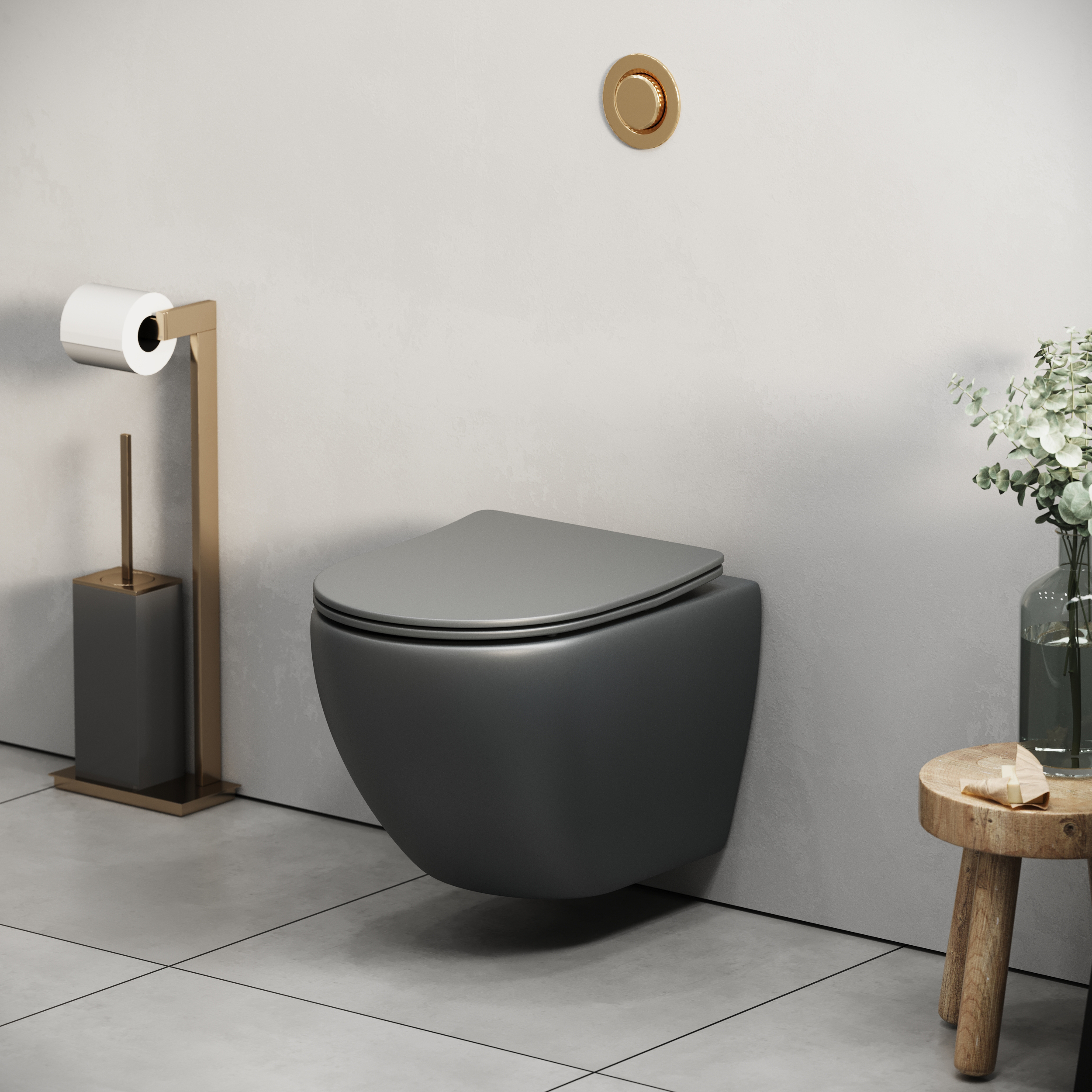Унитаз подвесной Grossman GR-4455GMSQ (485х360х320) безободковый,смыв торнадо,серый матовый с тонкой крышкой,микролифт,1 место