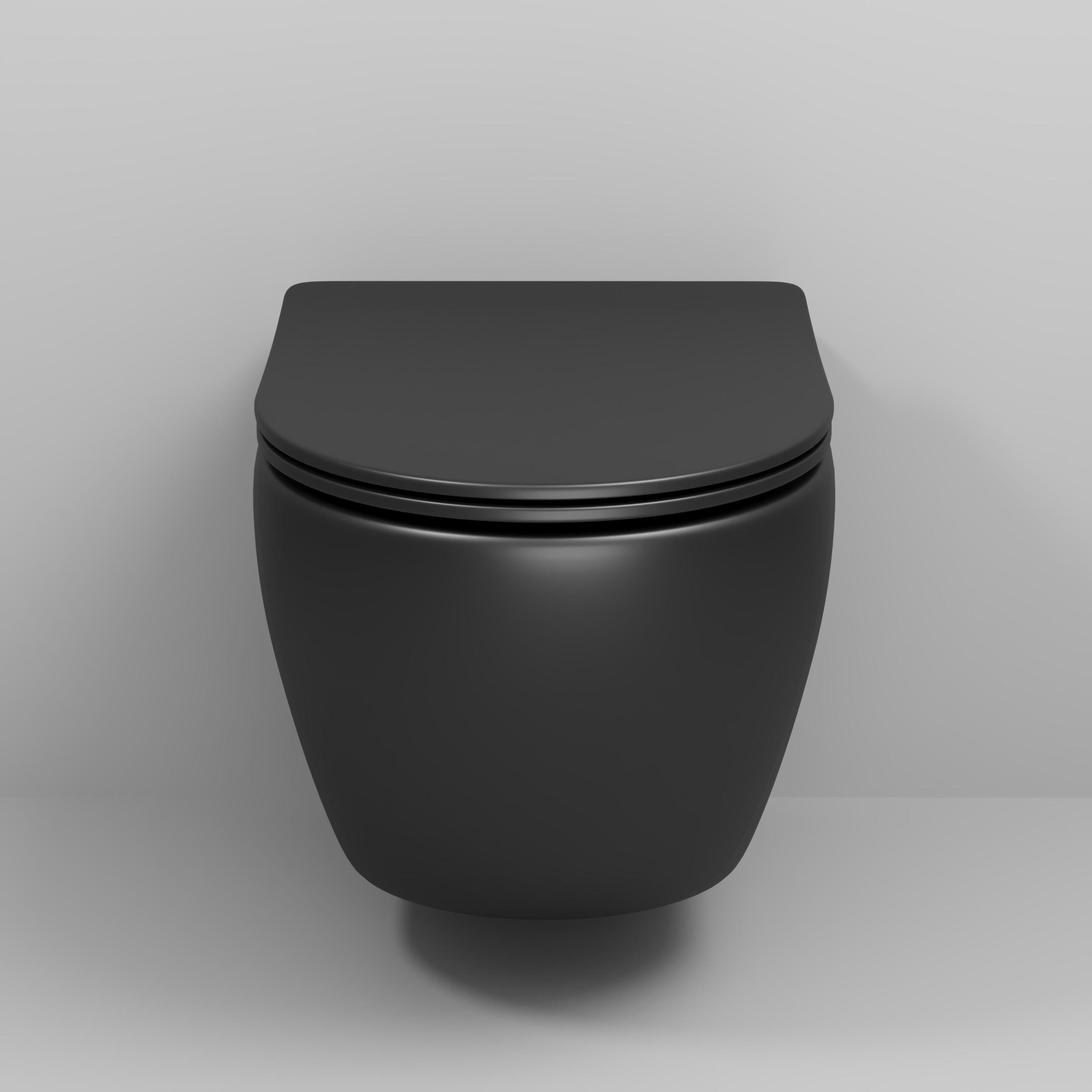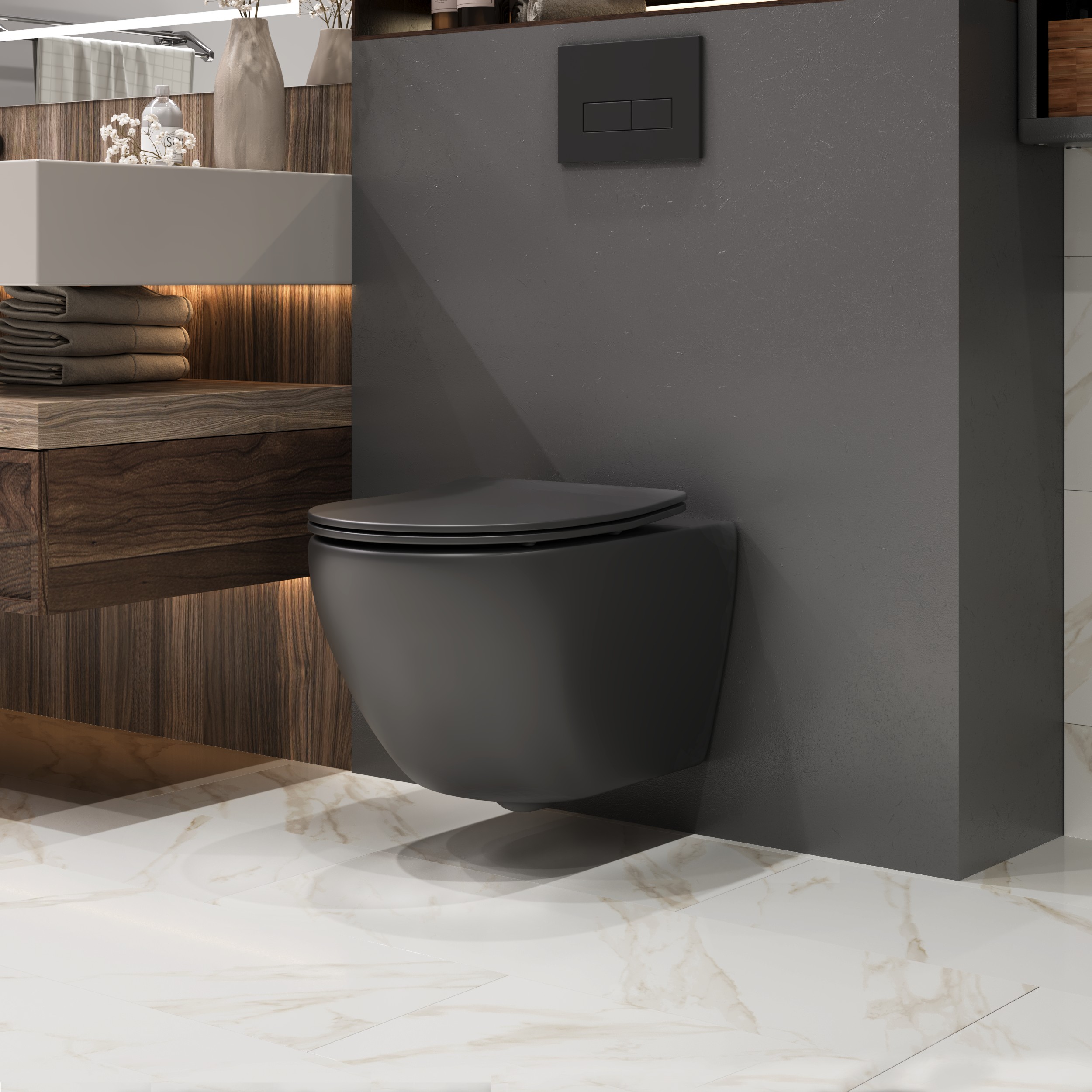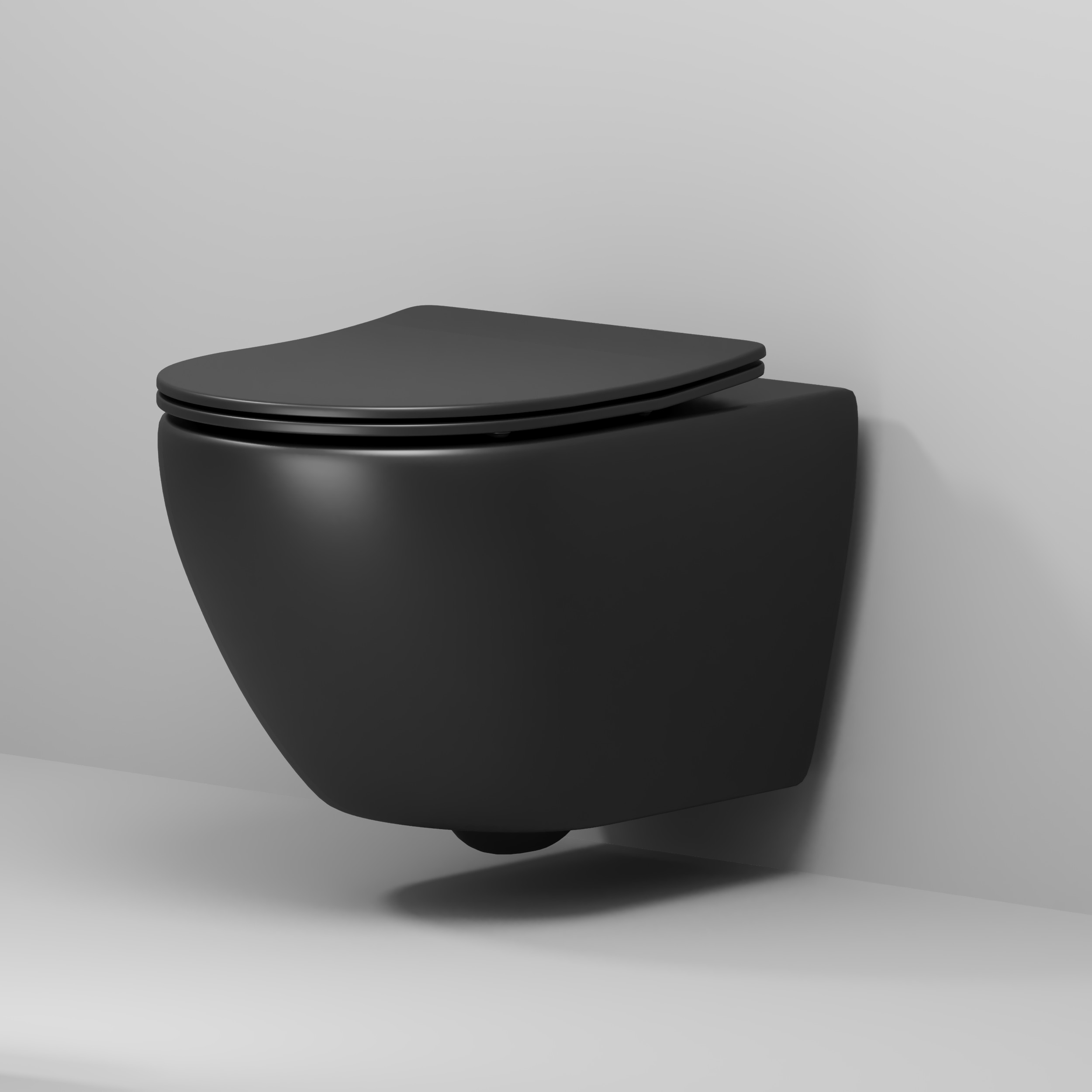 Унитаз подвесной Grossman GR-4457BMSQ (520х360х320) безободковый,смыв торнадо,черный матовый с тонкой крышкой,микролифт,1 место