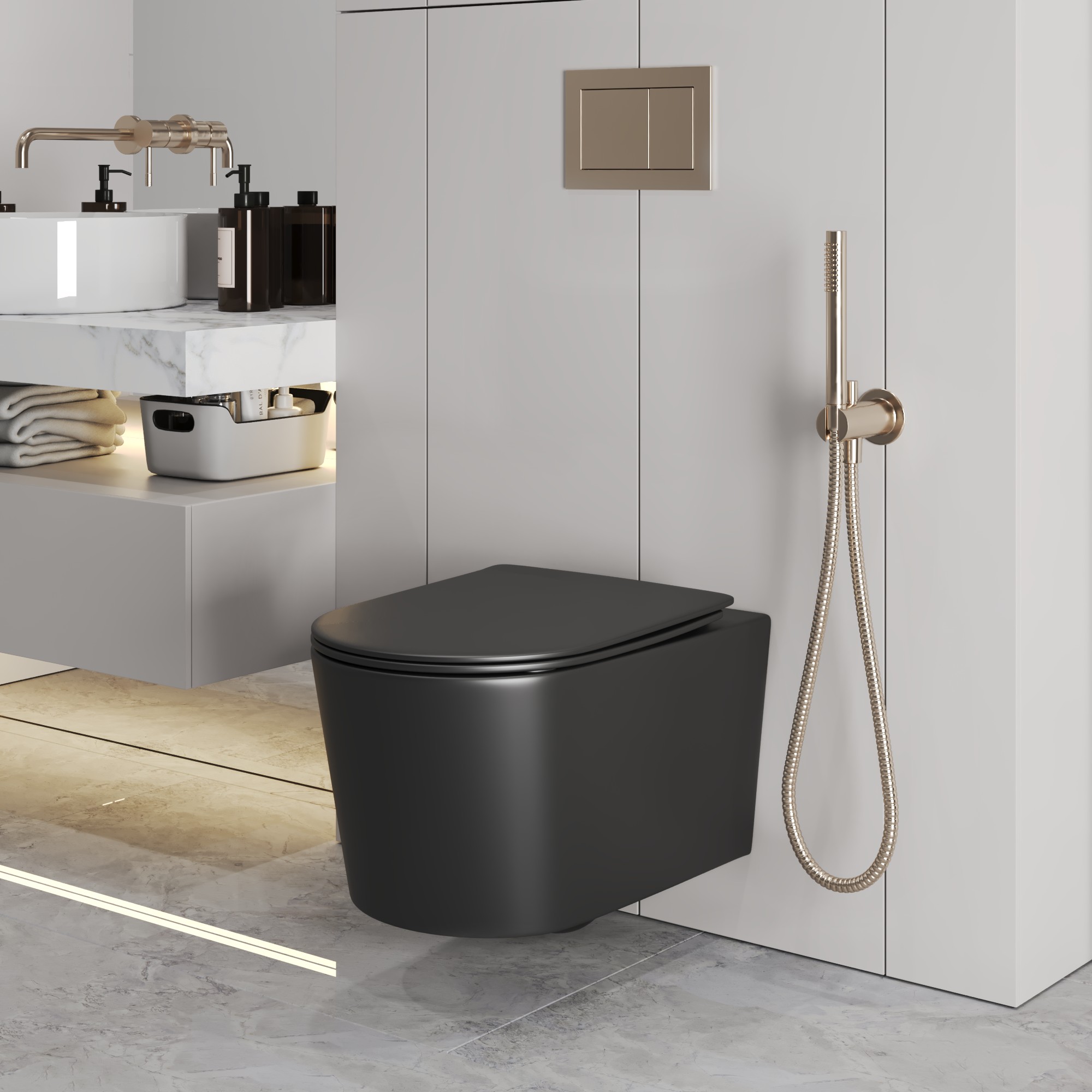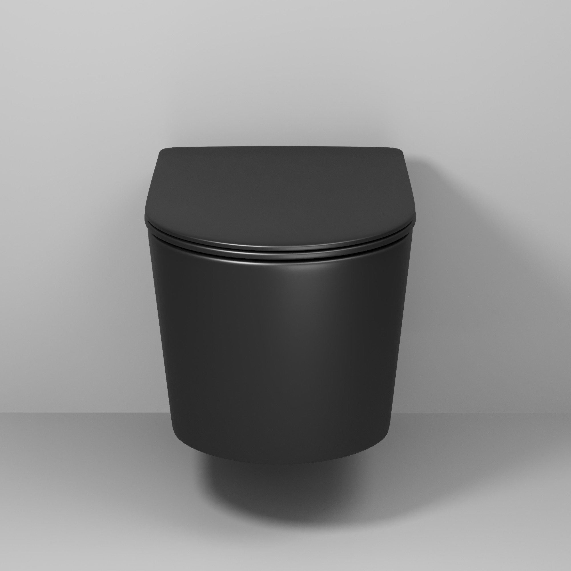 Унитаз подвесной Grossman GR-4499BMSQ (520х360х365) безободковый,смыв торнадо,черный матовый с тонкой крышкой,микролифт,1 место