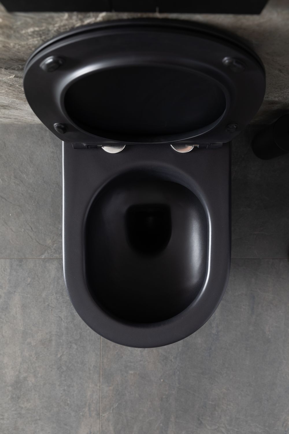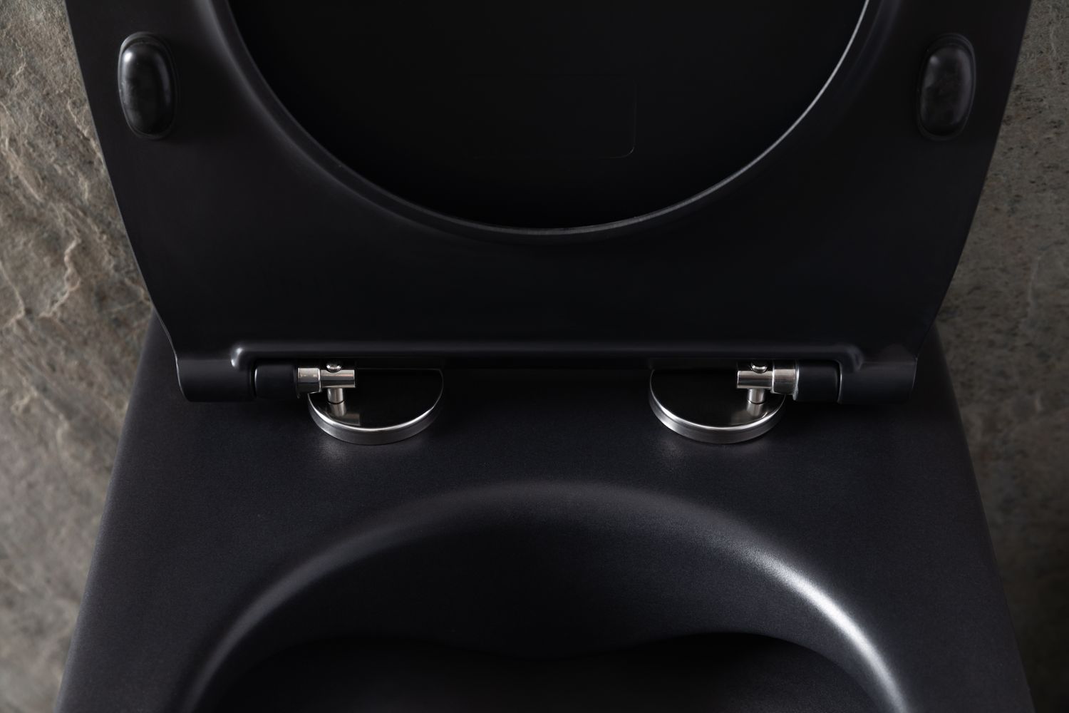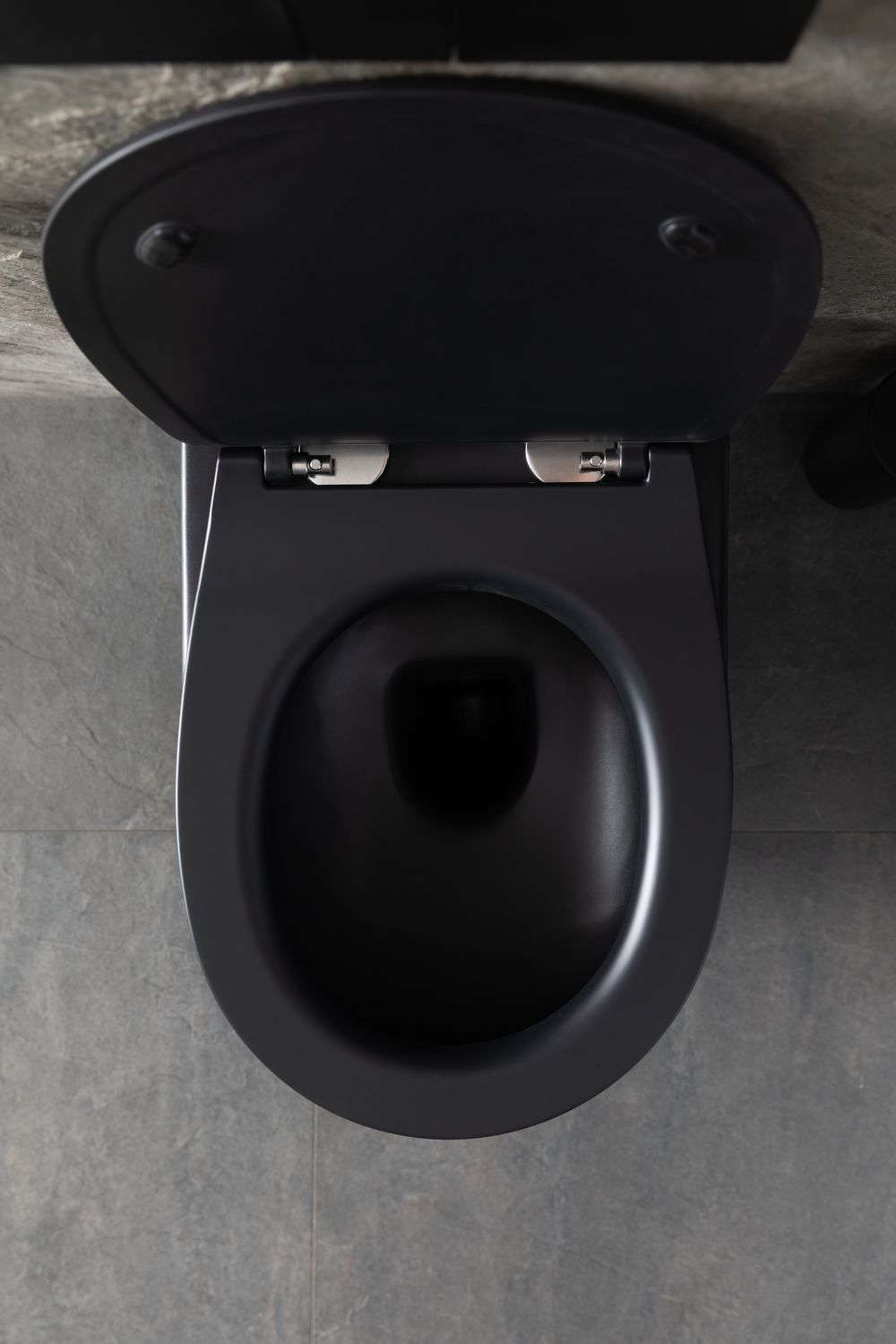 Эта модель сочетает в себе надежность и элегантный вид.<br/><br/>Черный матовый цвет чаши унитаза придает ему современный и стильный вид. Этот цвет легко сочетается с различными интерьерами и позволяет создать уникальный дизайн ванной комнаты.<br/><br/>Установка унитаза осуществляется подвесным способом, что позволяет экономить пространство в ванной комнате и облегчает процесс уборки. Благодаря подвесной установке, унитаз занимает минимум места, что особенно актуально для небольших ванных комнат.