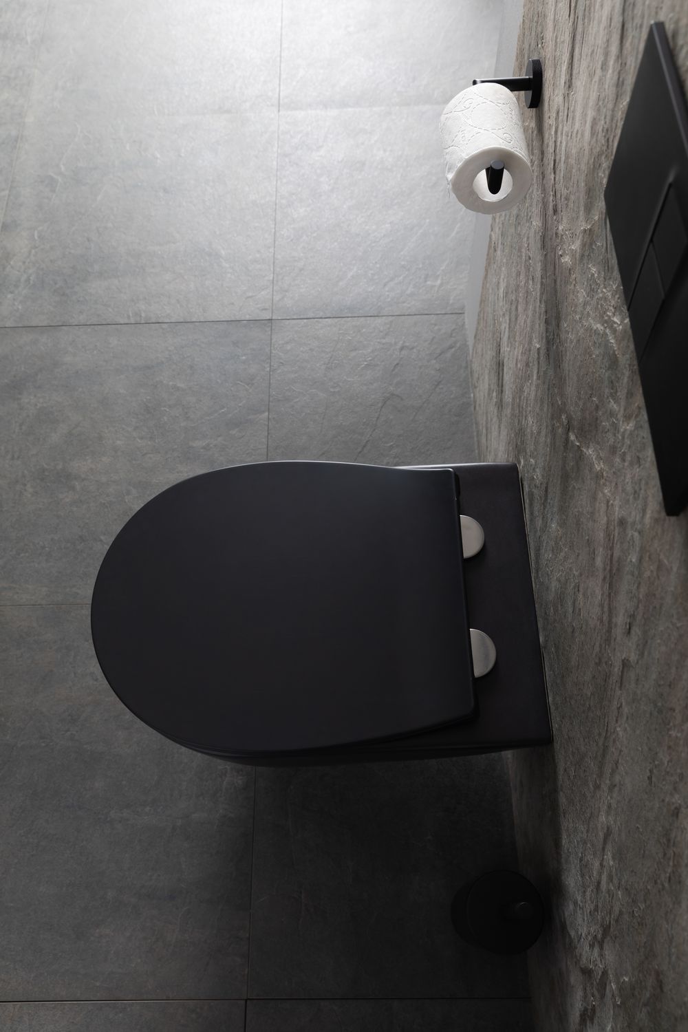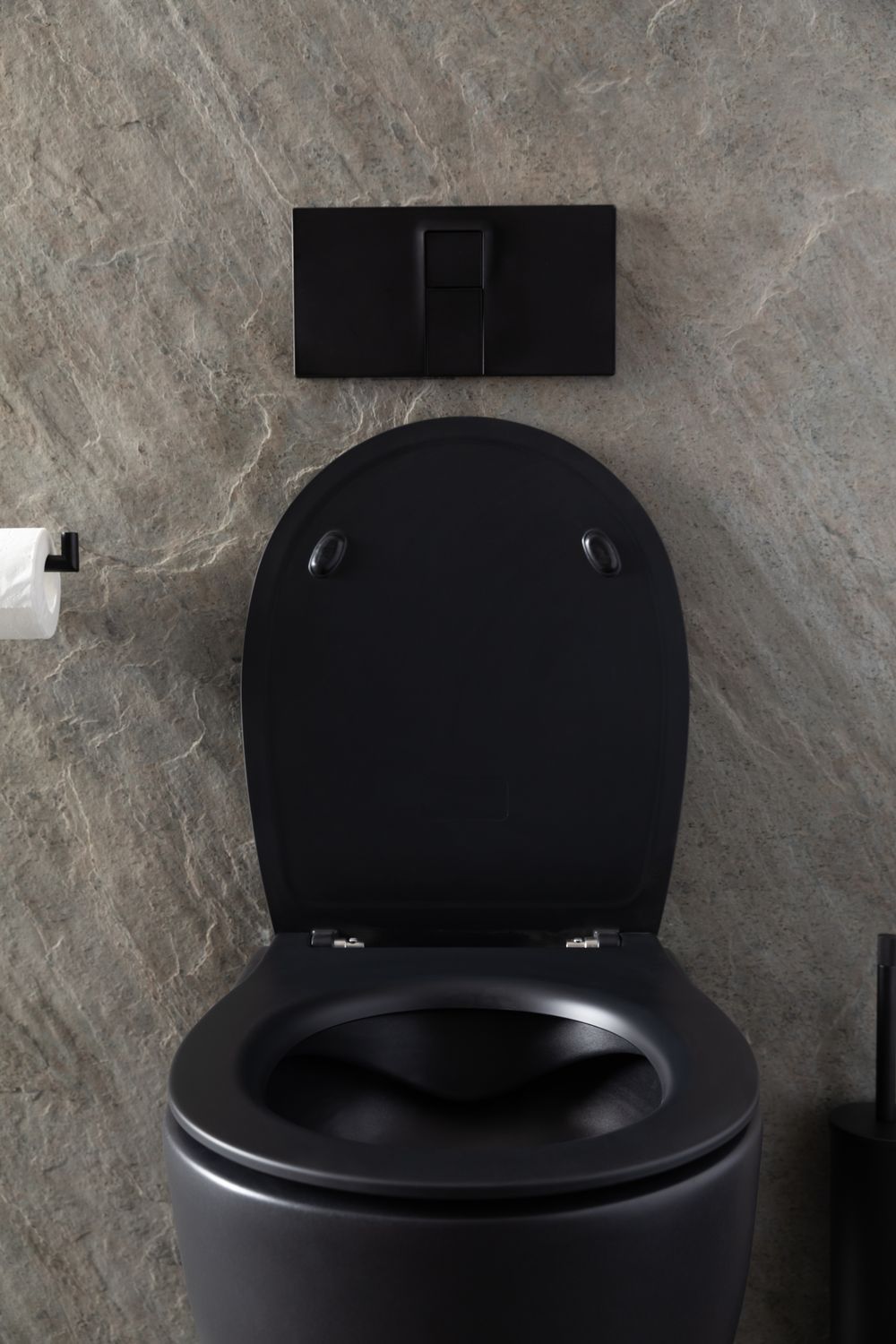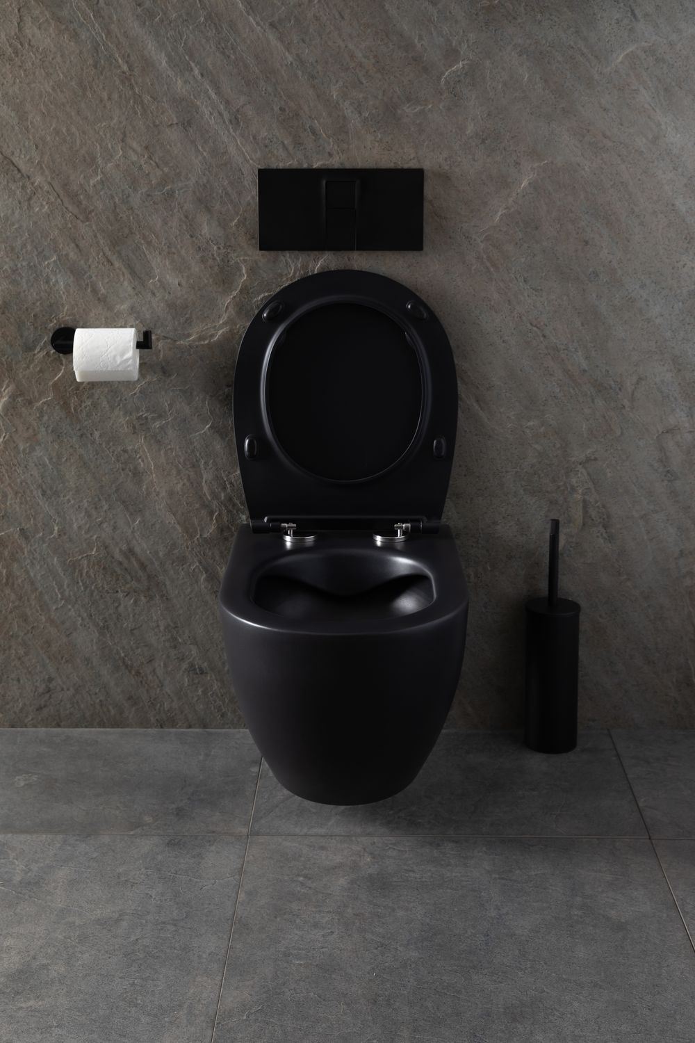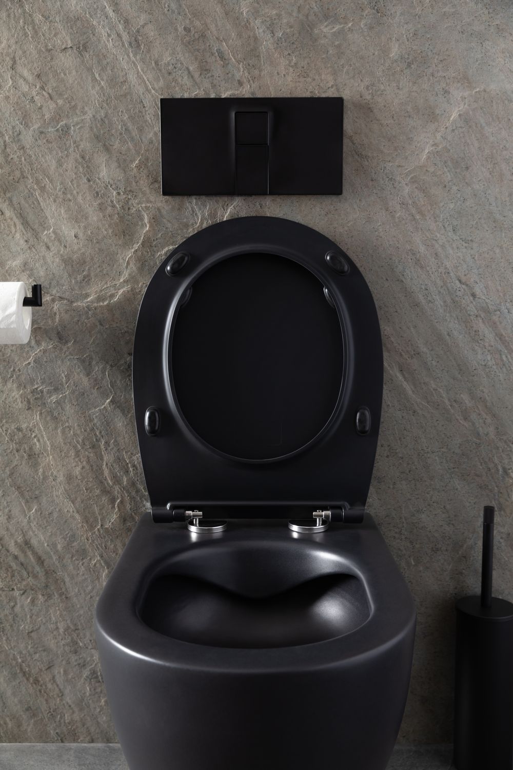 Эта модель сочетает в себе надежность и элегантный вид.<br/><br/>Черный матовый цвет чаши унитаза придает ему современный и стильный вид. Этот цвет легко сочетается с различными интерьерами и позволяет создать уникальный дизайн ванной комнаты.<br/><br/>Установка унитаза осуществляется подвесным способом, что позволяет экономить пространство в ванной комнате и облегчает процесс уборки. Благодаря подвесной установке, унитаз занимает минимум места, что особенно актуально для небольших ванных комнат.
