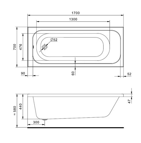 1.WH50.1.747 ЛАММА 170х70 Ванна акриловая прямоугольная (NEW)