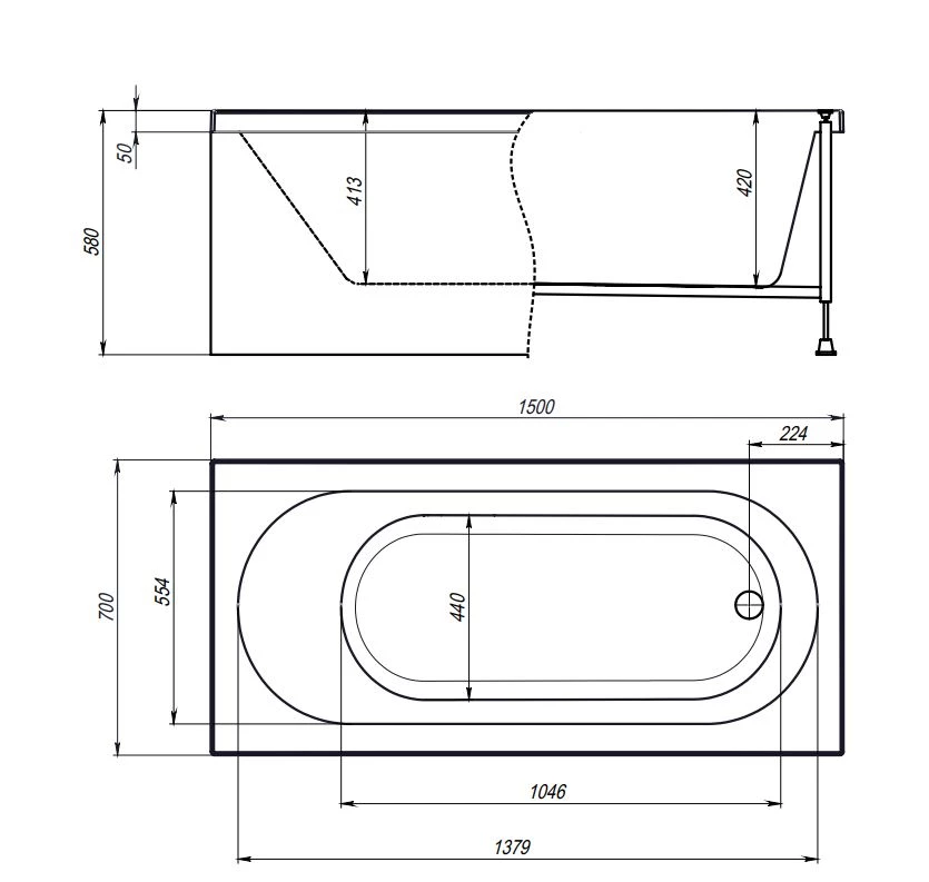 Акриловая ванна TIMO ROHA 1500*700*580 (ROHA1570)