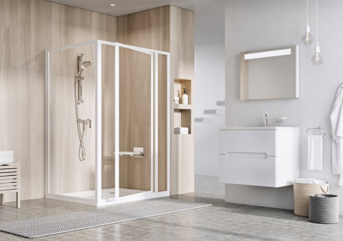 Неподвижная душевая стенка Ravak Supernova PSS-90, профиль белый, цвет стекла "Водная зябь"