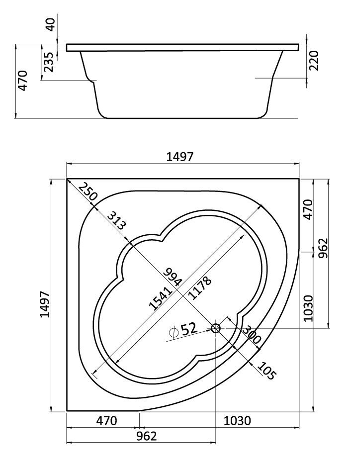 Отдельно приобретается монтажный комплект: каркас, система слив-перелив с сифоном, крепления ванны к стене и комплект креплений фронтальной панели.
