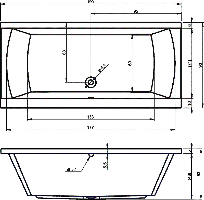 Изготовлена из литьевого санитарного акрила, приятная и теплая на ощупь. Идеально гладкая поверхность без пор делает ванну очень гигиеничной и простой в обслуживании, а небольшой вес облегчает установку.