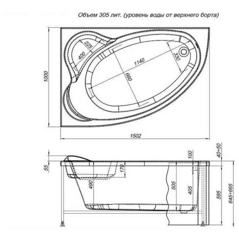 Акриловая ванна Aquanet Mayorca 310245 150х100 левая белый