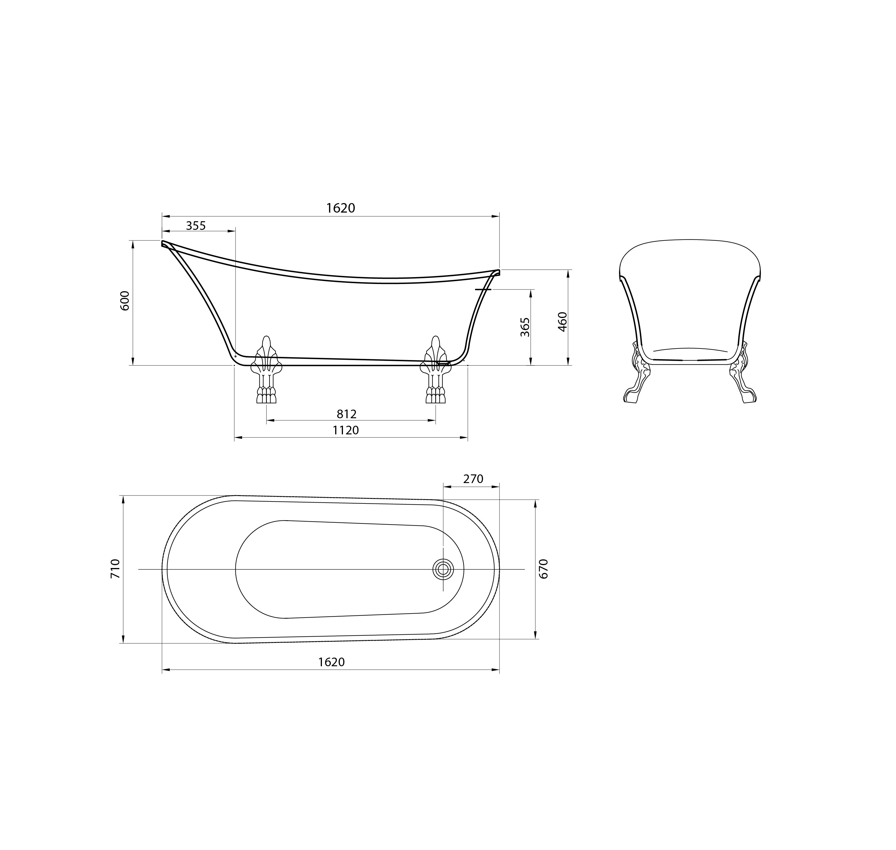Ванна отдельностоящая GR-1002 Retro (162x71x77) GROSSMAN 1 место