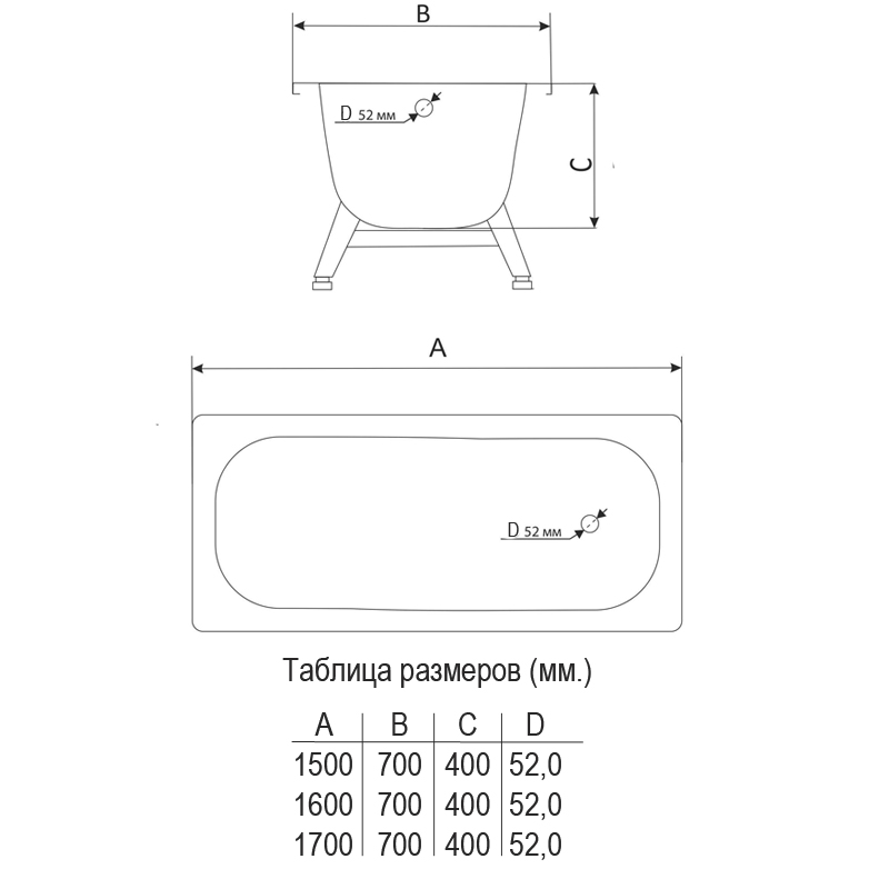 Ванна стальная ВИЗ MARION с опорной подставкой 160х70х40 без ранта, белый ирис (M-61903)