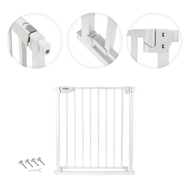Ворота предназначены для размещения в дверных или лестничных проемах. Используются для защиты маленьких детей от падения с лестниц, а также для предотвращения доступа к опасным зонам в доме.<br> Ворота оснащены замком, который обеспечивает надежную фиксацию и предотвращает случайное открытие. Взрослый может с легкостью открыть замок одной рукой. <br> Предусмотрено наличие пружины, которая обеспечивает автоматическое закрывание. <br> Установка ворот осуществляется с помощью распорок с силиконовыми накладками, не требует сверления, не повреждает дверь и стены. <br> Материал изготовления – высококачественная и прочная высокоуглеродистая сталь. <br> Цвет: белый. Высота: 76 см. Длина: 75-82 см.<br> В комплекте поставляется 4 фиксатора с силиконовой насадкой и гаечный ключ.