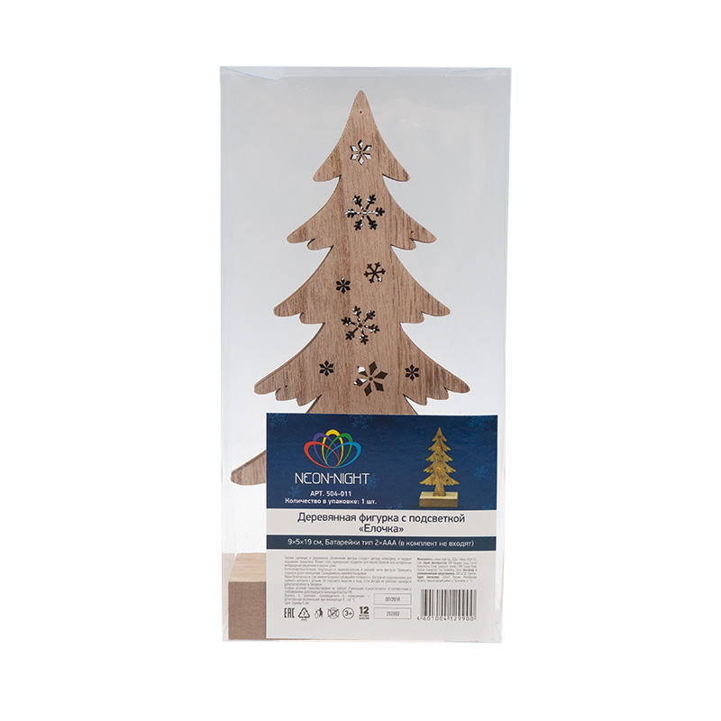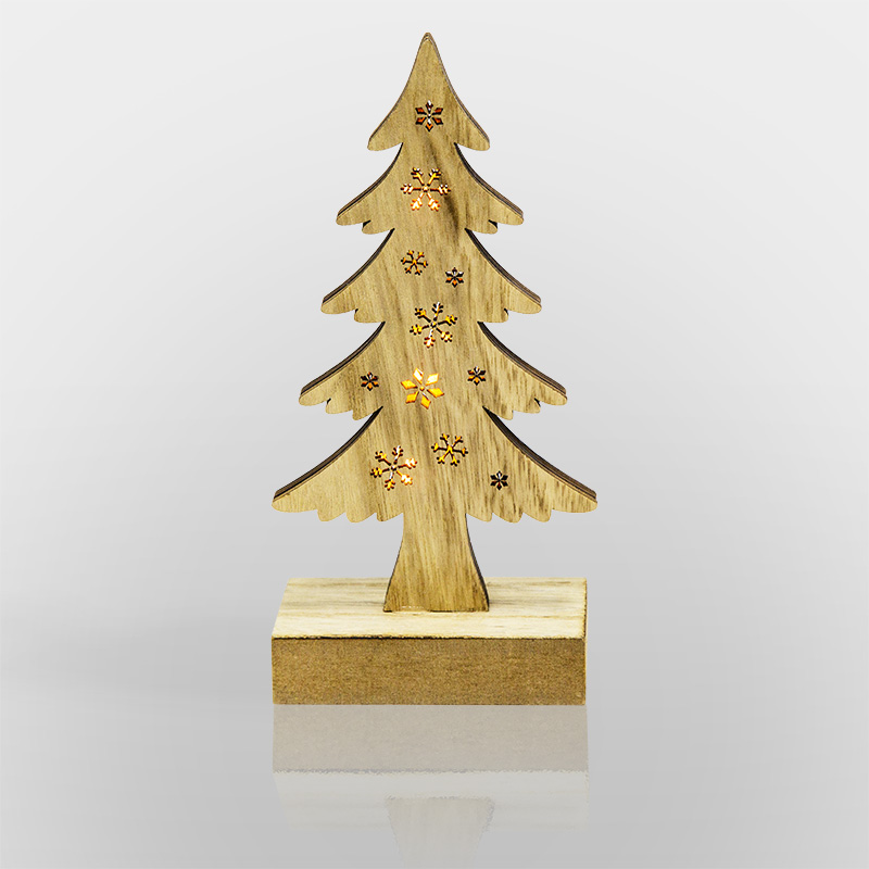 Деревянная фигурка с подсветкой «Елочка» 9×5×19 см — экологичное, безопасное и очень эффектное интерьерное украшение, которое понравится и взрослым, и детям. Декоративный элемент выполнен в виде елки из листовой древесины с характерной фактурой. На поверхности вырезаны сквозные снежинки разных форм, через которые проникает мягкий теплый свет трех диодов, расположенных внутри. Светодиоды, питающиеся от 2 батареек типа ААА, не нагревают изделие и экономно расходуют заряд. Деревянная фигурка с подсветкой станет прекрасным подарком к любому зимнему празднику.
