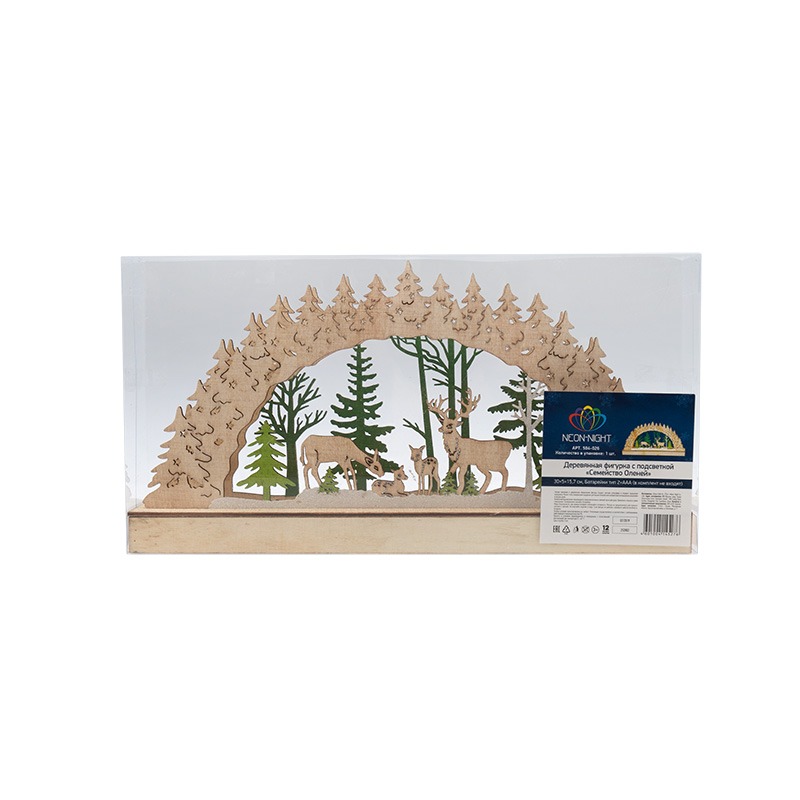 Деревянная фигурка с подсветкой Семейство оленей 30х5х15,7 см