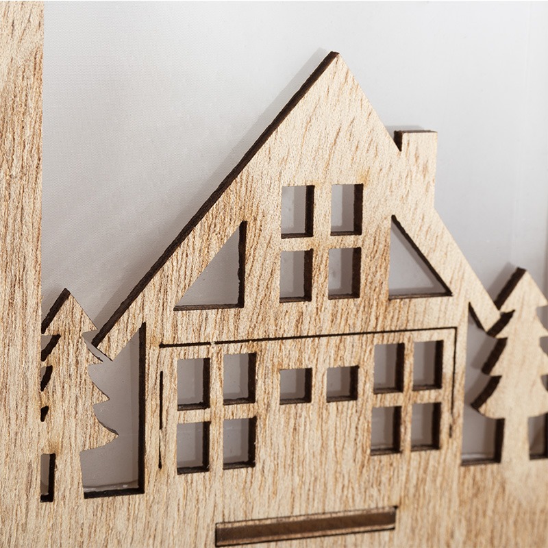 Деревянная фигурка с подсветкой «Рождественская сказка» 44,5×6×24 см представляет собой затейливую композицию из фигурок елей, Деда Мороза с мешком подарков и большой радуги из резных снежинок. 7 ярких диодов эффектно подсвечивают декор и питаются от 2 батареек типа ААА. Светодиоды экономичны, долговечны и абсолютно безопасны. Удобная подставка подходит для размещения на любой ровной поверхности. Фигурка «Рождественская сказка» — идеальный подарок к Новому году, который порадует и детей, и взрослых.
