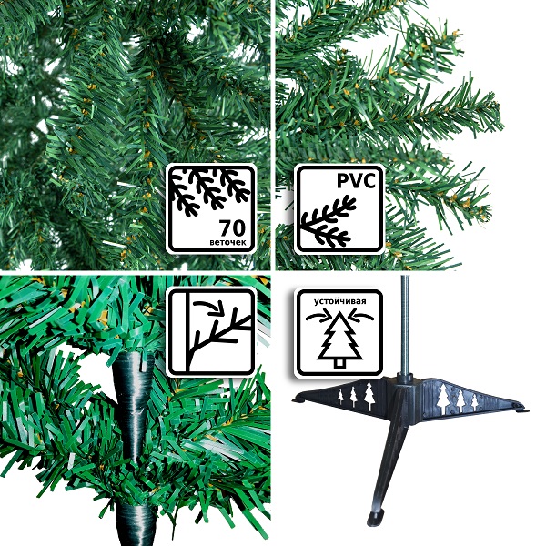 Искусственная ель Winter Glade станет замечательным украшением дома в праздники. Пушистые ветки выполнены из PVC, благодаря чему дерево выглядит похожим на настоящую сосну. Ель надежно закрепляется на подставке, а процесс сборки не займет много времени.