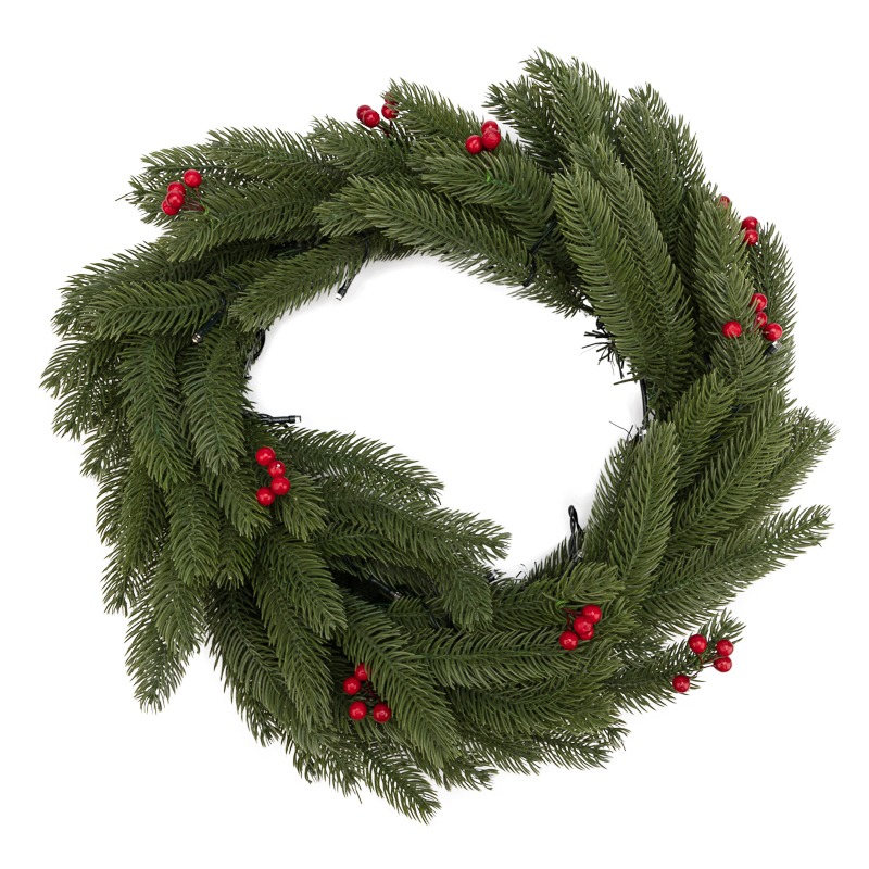 Еловый венок с ягодами и гирляндой NEON-NIGHT Ø 45 см, 20 LED, 2 х АА, литой, теплое белое свечение
