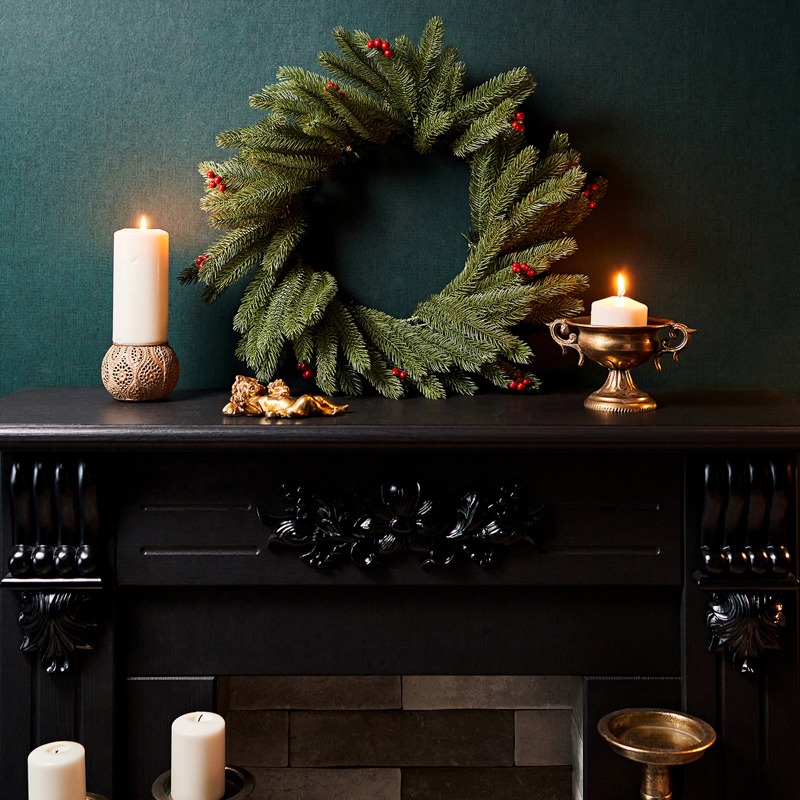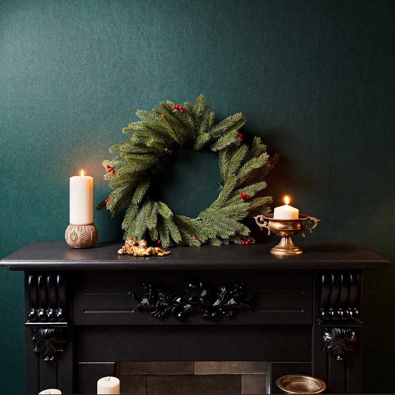 Еловый венок с ягодами диаметром 45 см — традиционное украшение входных дверей и стен в новогодние праздники. Литые пушистые ветки с мягкими иголками выполнены настолько реалистично, что на первый взгляд искусственная хвоя неотличима от настоящей — еловой. Ярко-красные ягоды остролиста, являющиеся символом Рождества, гармонично дополняют композицию. Венок будет радовать своей красотой много лет благодаря прочным качественным материалам изготовления и простому хранению в межсезонье.