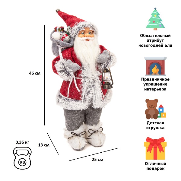 Фигурка Дед Мороз 46 см (красный/серый)