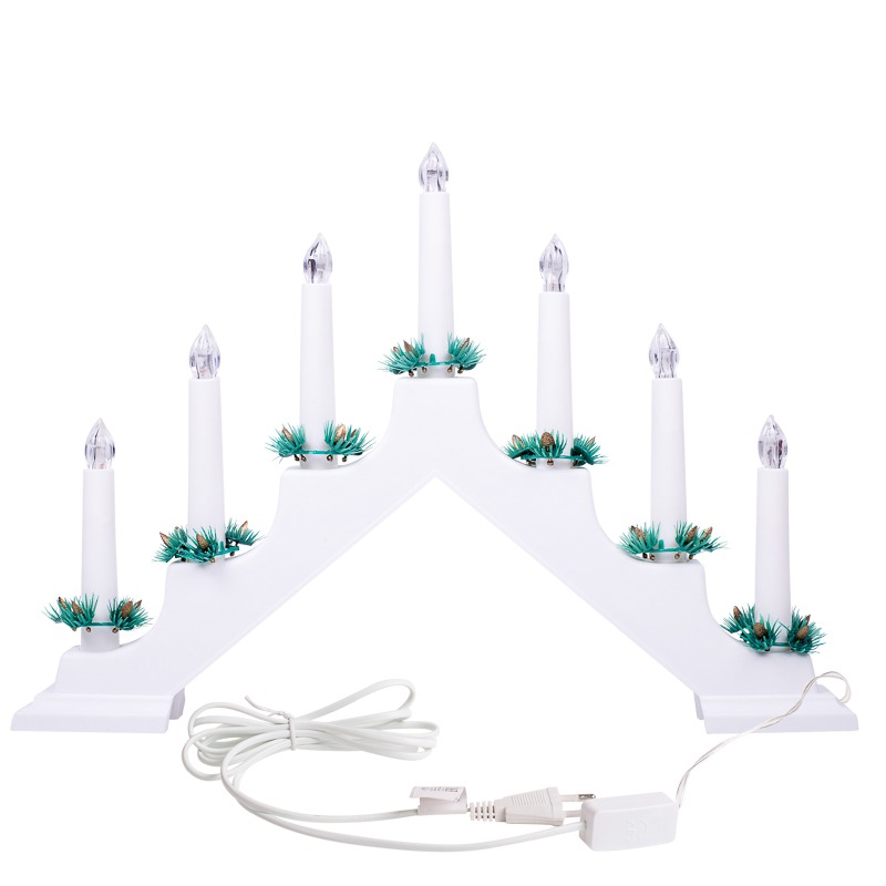 Новогодняя горка 7 свечек, цвет корпуса: Белый, цвет свечения: ТЕПЛЫЙ БЕЛЫЙ