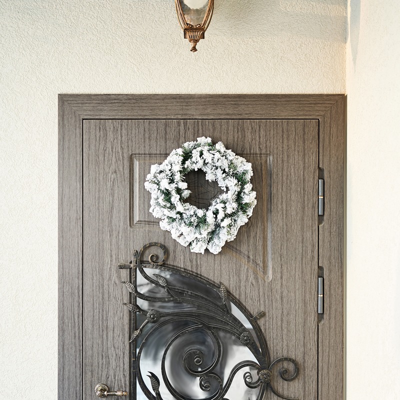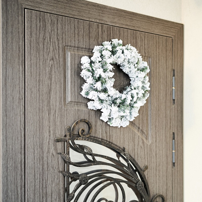 Заснеженный еловый венок диаметром 45 см — классическое интерьерное и экстерьерное украшение, выполненное из поливинилхлоридной пленки. Имитация легкого инея, покрывающего хвойные ветки с мягкими иголками, усиливает эффект реалистичности. Допускается использование не только дома, но и на улице. Еловый венок станет эффектным украшением входной двери, которое поможет почувствовать атмосферу праздника, царящую в вашем доме, прямо с порога.