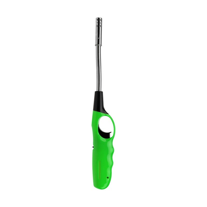 Зажигалка газовая бытовая, с пьезоэлементом и гибким стержнем.<br> Общие габариты зажигалки: 258х33х21 мм<br> <br> Основные характеристики: <br> Регулировка пламени<br> Возможность наполнения<br> Детский предохранитель<br> Цвет: зеленый