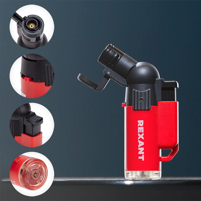 Устройство оснащено функцией регулировки угла наклона сопла, а также защитным колпачком, предотвращающим случайный поджиг.