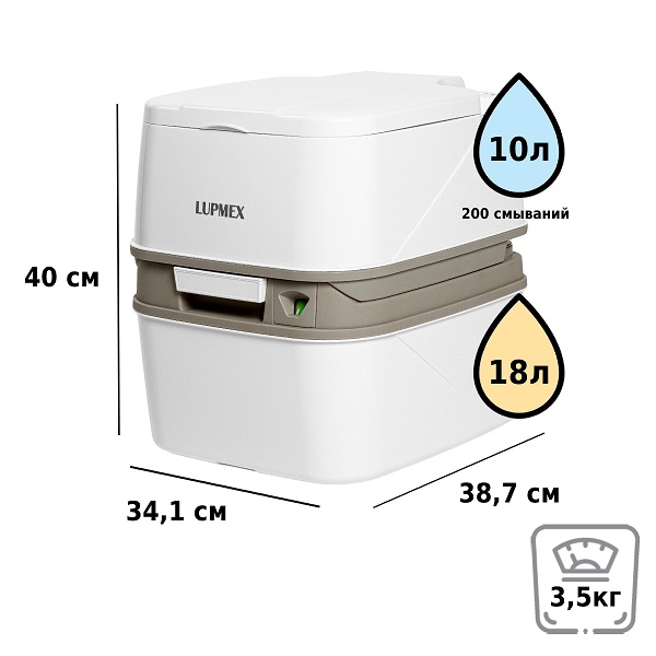 Биотуалет LUPMEX – простое и функциональное решение при отсутствии стационарной канализации. В модели есть бак для чистой воды на 10л (40 смываний), а также большой бак для отходов на 18 л с индикатором заполнения. Биотуалет имеет удобное эргономичное сиденье, поршневой насос и эффективную систему смыва.<br>