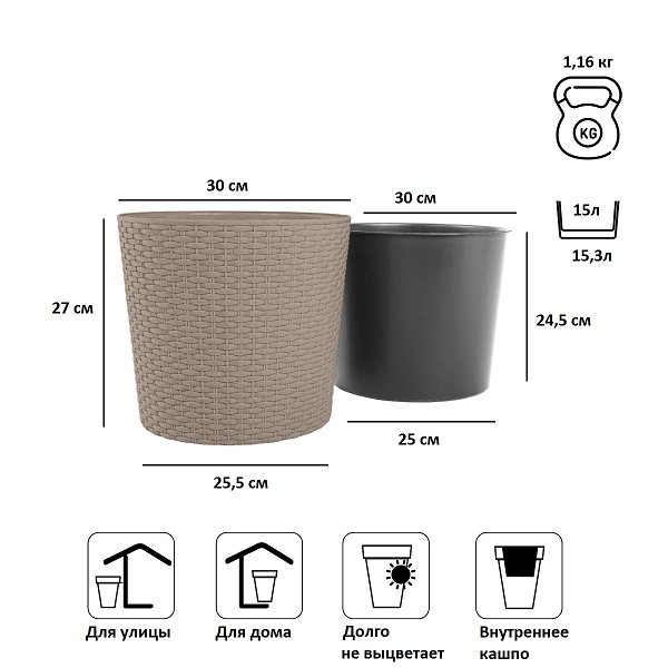 • Комплектация: 2 предмета (внутренняя емкость + декоративная емкость) <br>