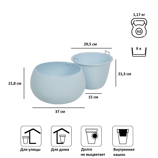 • Комплектация: 2 предмета (внутренняя емкость + декоративная емкость)