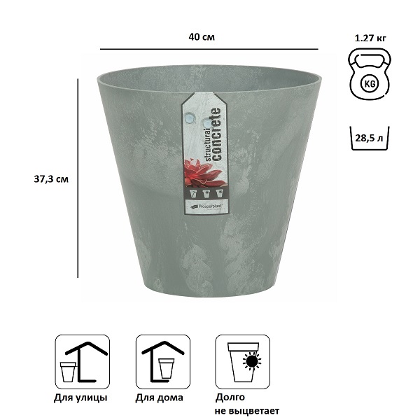 Кашпо для цветов Tubus Beton является замечательным украшением садового интерьера, дома, зоны отдыха. Благодаря прочному пластику изделие обладает устойчивостью к ультрафиолетовым лучам.