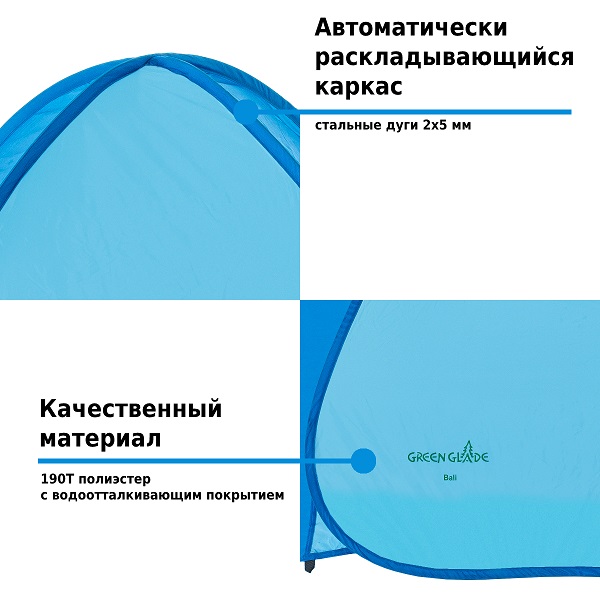 Палатка Green Glade Bali пригодится на пляже или во время отдыха на природе. Тент защитит от солнечных лучей в жаркий день. Палатка очень компактная и легкая, поэтому ее удобно брать с собой. Сборка происходит автоматически за несколько секунд.<br>