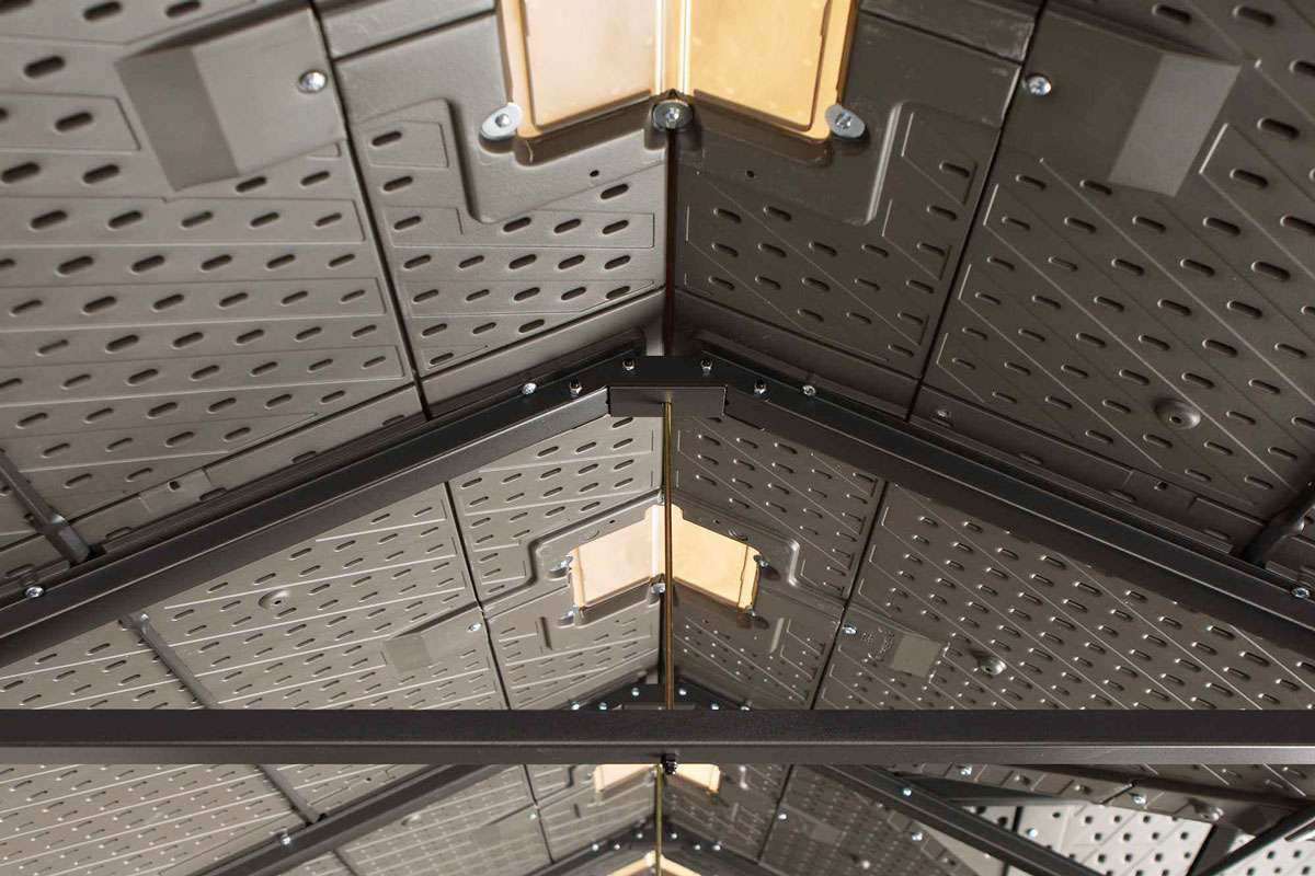 Пластиковый сарай Woodlook 15`x 8`самый большой из представленных, отличается вместимостью и двойным входом, что обеспечит легкую доступность к хранимым вещам, позволит зонировать пространство сарая под ваши нужды и подарит вам безграничные возможности хранения, поместиться всё: