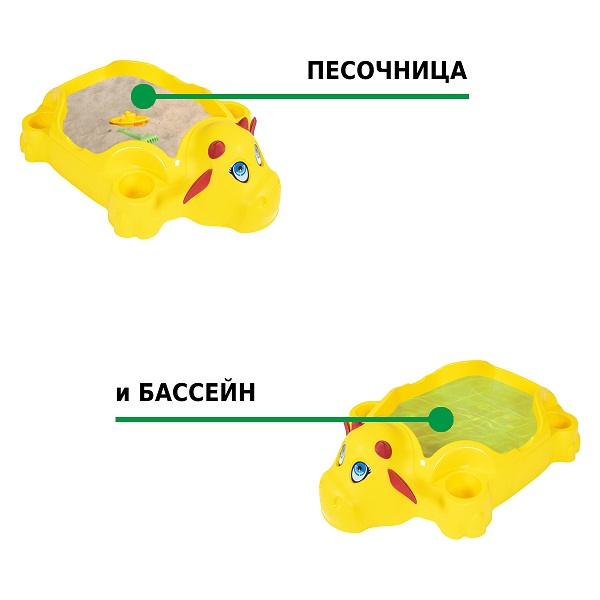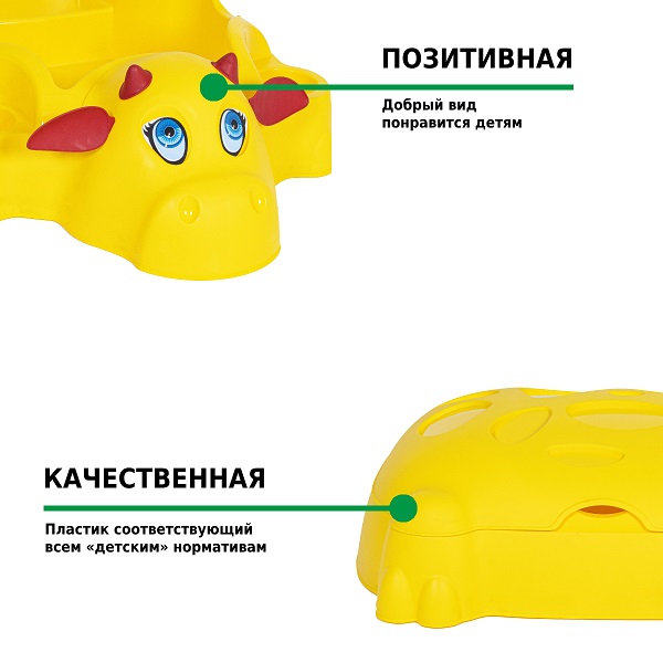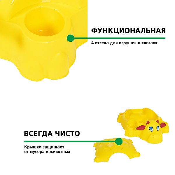 Песочница – бассейн выполнена из качественного пластика, устойчивого к влаге, перепадам температуры и УФ-излучению. Обладает высокой прочностью и долго не выцветает на солнце. Отсутствие острых углов обеспечивает безопасность ребенку во время игры. Крышка защищает содержимое песочницы – бассейна от осадков и других загрязнений.<br>