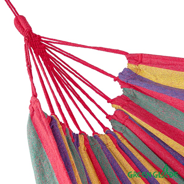 Подвесной гамак Green Glade – это гарантия отличного времяпровождения на свежем воздухе. В тканевом гамаке можно уютно расположиться с любимой книгой в руках, спрятаться от жары в тени деревьев и подремать. А яркая расцветка поспособствуют отличному летнему настроению.
