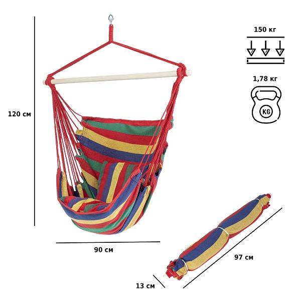 Подвесные качели-гамак Green Glade – это гарантия отличного времяпровождения на свежем воздухе. В них можно уютно расположиться с любимой книгой в руках, спрятаться от жары в тени деревьев и подремать. Мягкая подушка в комплекте подарит удобство и комфорт при сидении. Яркие и жизнерадостные расцветки ткани зарядят Вас позитивной энергией и улучшат настроение.