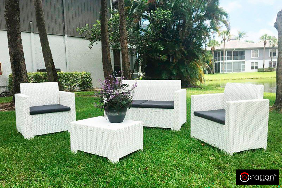 Стильная итальянская мебель для кафе, ресторанов и отелей Nebraska Set 2 от итальянского производителя B:Rattan рассчитан на 4 персоны и включает 4 предмета: 2х-местный диван, 2 кресла и кофейный столик. Пластиковый комплект порадует любителей плетеной мебели своей фактурой в стиле ротанг и прочностью: максимальная нагрузка на кресло и диван — до 160 кг.