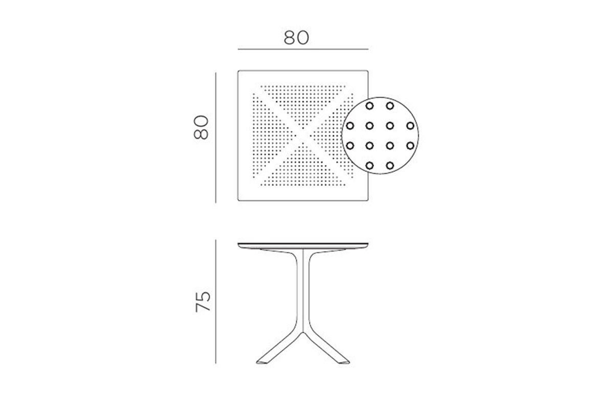 Стол Clip 80 от Nardi - это стильное и элегантное современное решение итальянских дизайнеров разработанное специально для коммерческого использования в помещении и на улице.Стол изготовлен из стеклопластика с перфорированной большой столешницей, легкий, удобный в использовании и хранении - разборный, нескользящие ножки, гладкая бесшовная матовая поверхность, с закругленными углами и профилями.