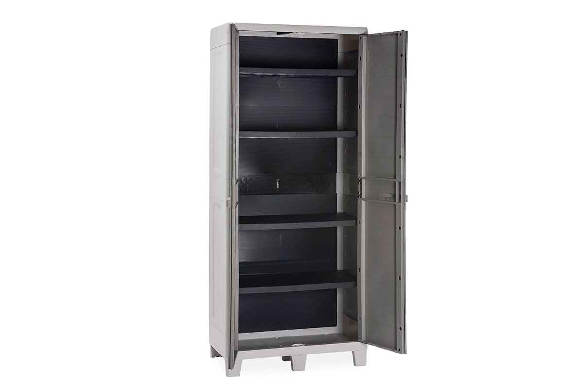 Высокий садовый двустворчатый пластиковый шкаф Toomax Woody's XL 077 с регулируемыми полками.