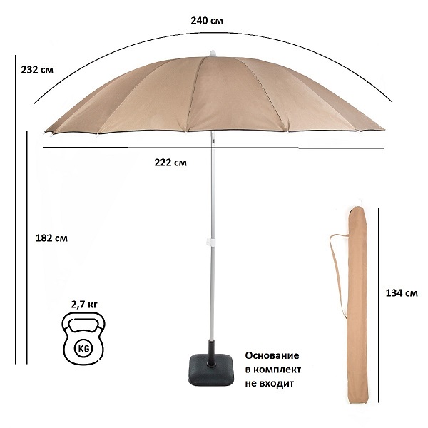 Перед использованием зонт необходимо надежно закрепить в основание для зонта. Основание в комплект поставки не входит.