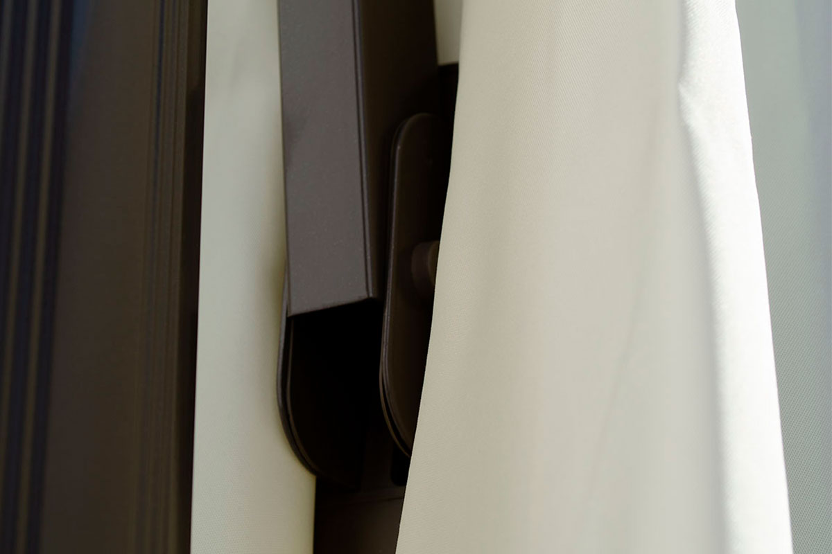 Купол зонта изготовлен из полиэстрового покрытия плотностью 200 г/м2, бежевый цвет ткани идеально сочетается с каркасом.