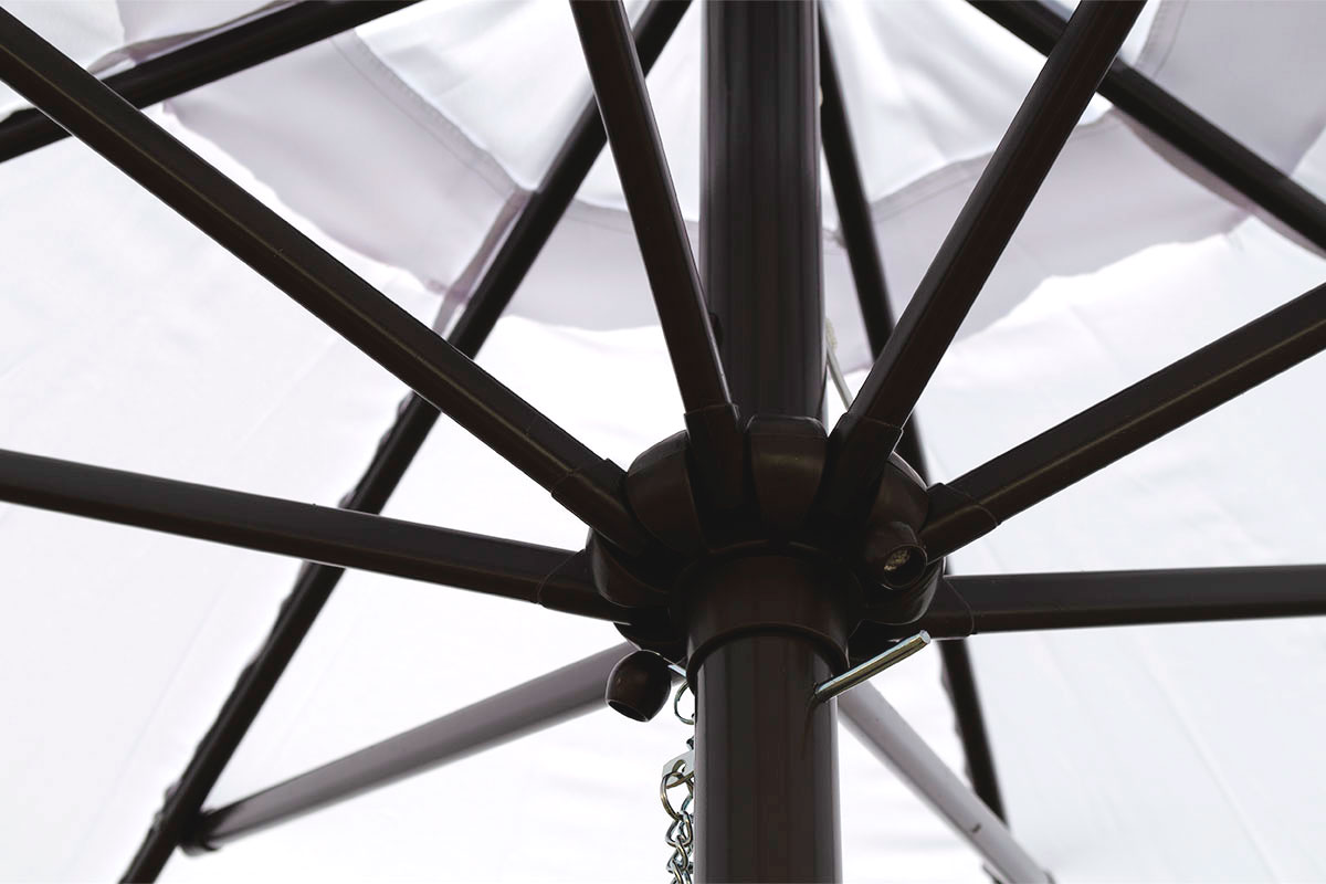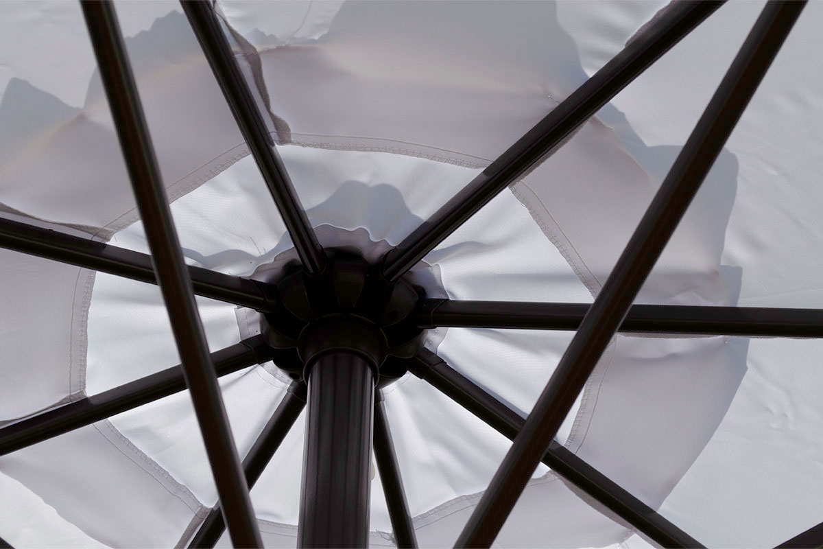 В конструкции использованы 6 овальных спиц размером 10х18 мм и механизм открывания push-up. Металлические толстые спицы выдерживают сильнейшую нагрузку ветра.