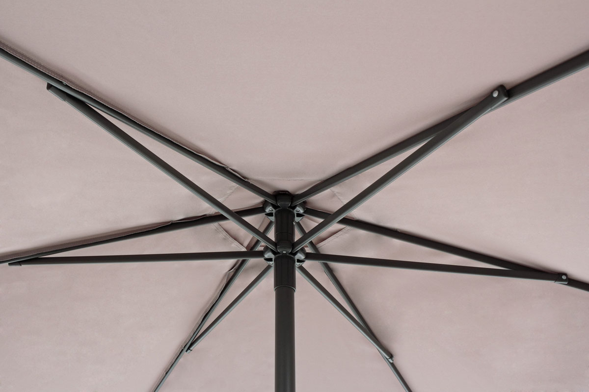 В конструкции использованы 6 овальных спиц размером 12х18 мм и механизм открывания push-up. Металлические толстые спицы выдерживают сильнейшую нагрузку ветра.