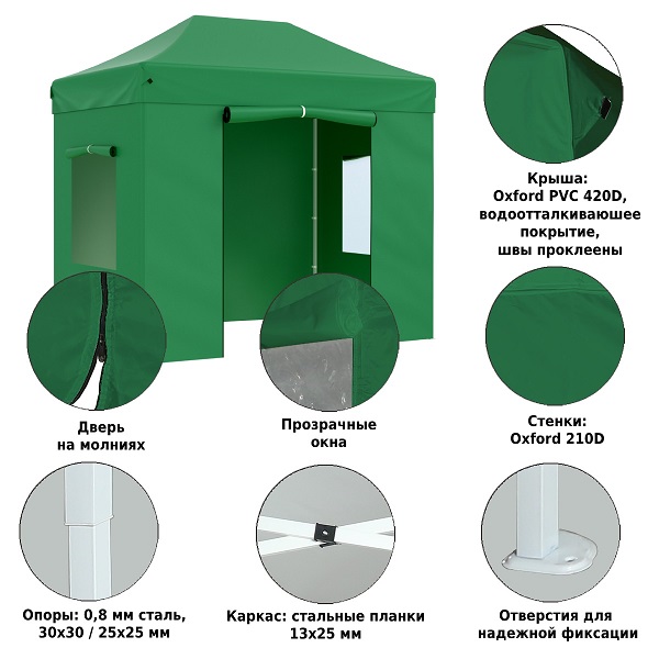Тент-шатер быстросборный Helex 4321 3х2х3м полиэстер зеленый
