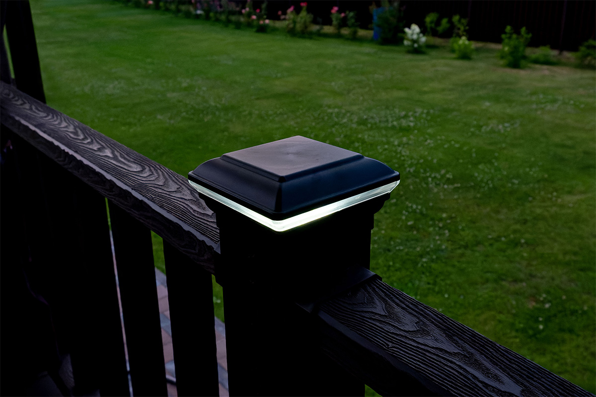 Это решение «два в одном» для вашего загородного дома, которое позволяет создать аккуратный законченный вид ограждения и равномерно провести освещение по всей территории террасы.