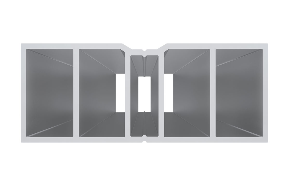Лага имеет 4 внутренних ребра жесткости. Оптимальный вариант для создания подсистем небольшой высоты с невысокими требованиями к прочности. Укладывается на умеренно неровное, например, бетонное основание через резиновые подкладки.