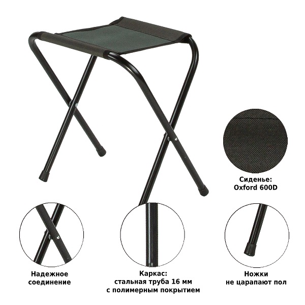 Удобный и компактный складной стул-табурет Green Glade РС110 идеально подходит для отдыха на природе, даче, рыбалке. Стул можно без труда разложить, а в собранном виде он занимает минимальное количество места, поэтому его можно хранить в любом уголке дома или брать с собой, поместив, например, в сумку или рюкзак.