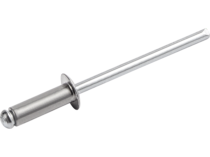 Заклепка вытяжная комбинированная – многофункциональная соединительная деталь, применяется с целью обеспечить высококачественное и надежное крепление на монтаже, удобно применять, когда доступ к работам имеется только с одной стороны. Вытяжные заклепки изготавливается в соответствии со стандартами DIN из комбинации алюминия Mg1/5 (легкость и коррозийная стойкость) и оцинкованной стали С1018 (твердость и прочность), представляет собой специальный стрежень с гильзой. Бывают открытого или закрытого типа, с выпуклой или потайной головкой. Крепление осуществляется с помощью специального инструмента – заклепочника.