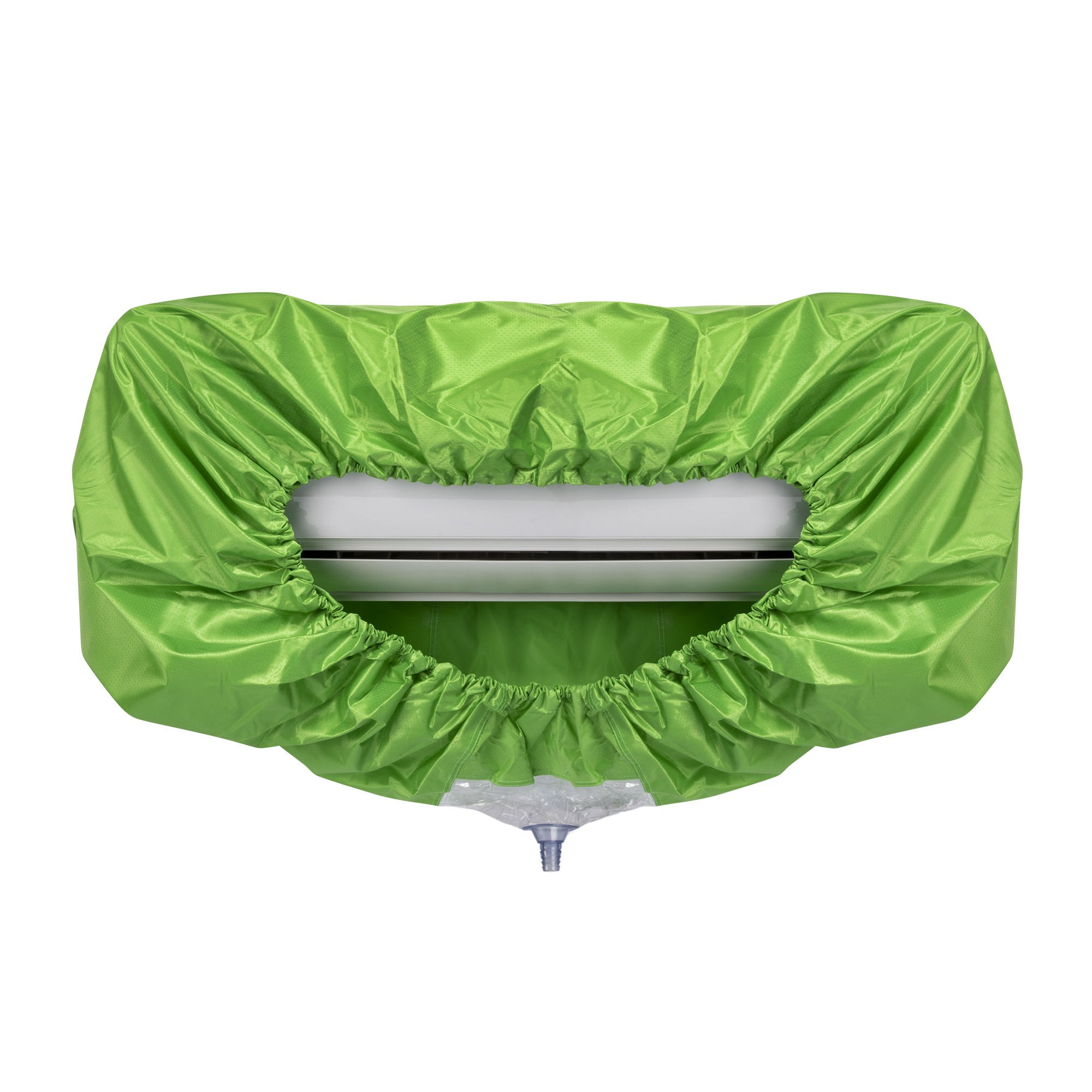 Чехол изготовлен из прочной водонепроницаемой ткани, имеет специальные застежки для простоты использования с различными по размерам блоками кондиционеров.