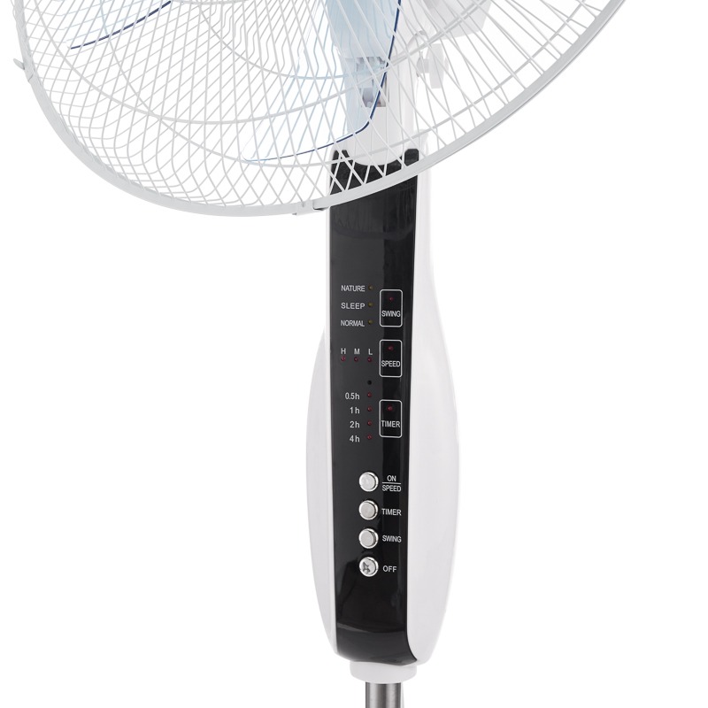 Вентилятор напольный белый/синий 60 Вт, 5 лопастей, подставка круглая, д/у управление